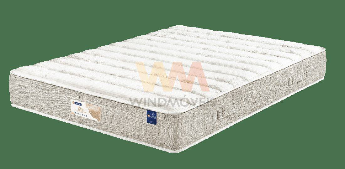 ...com aro de aço de 5mm e aglomerado de espuma de 60Kg/m³. Enchimento Feltro termofixado para protecção das molas com 1200gr/m² de gramagem. Placas de espuma de poliuretano de 20...