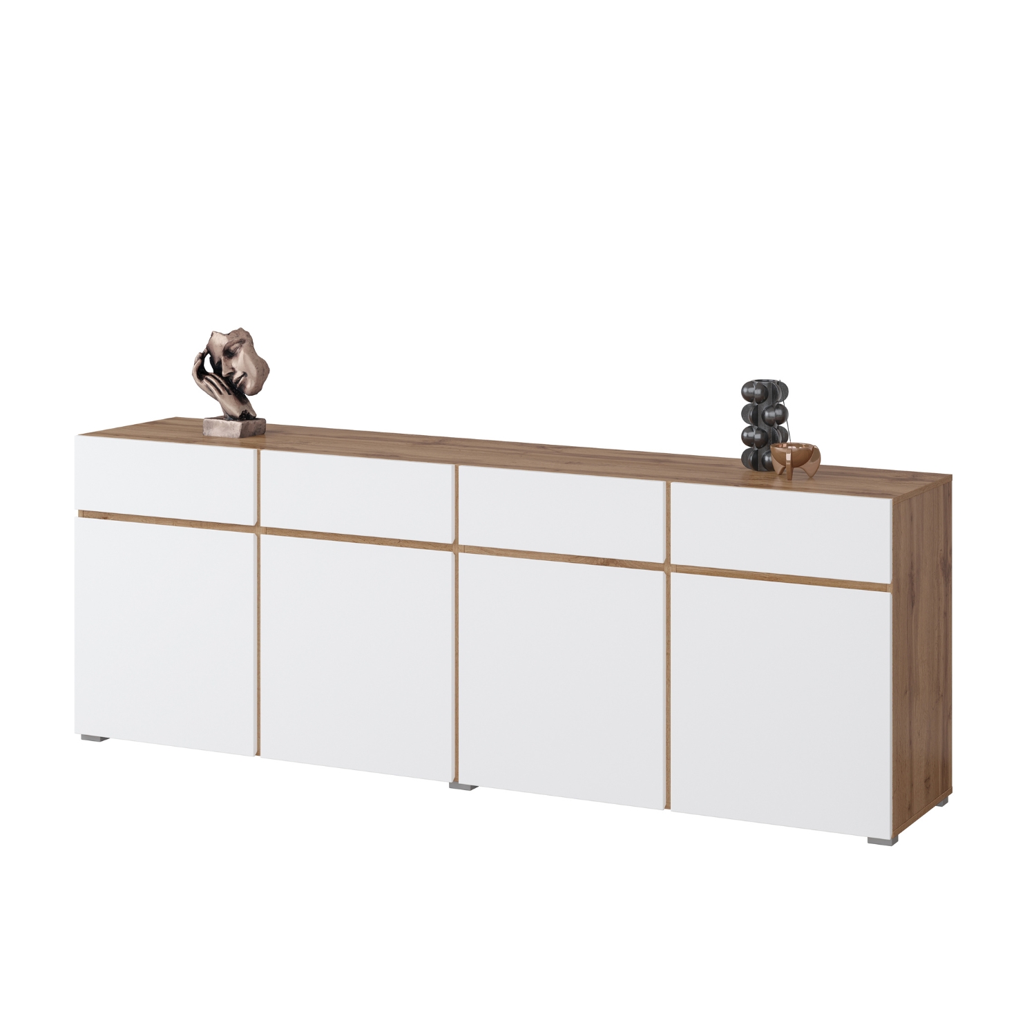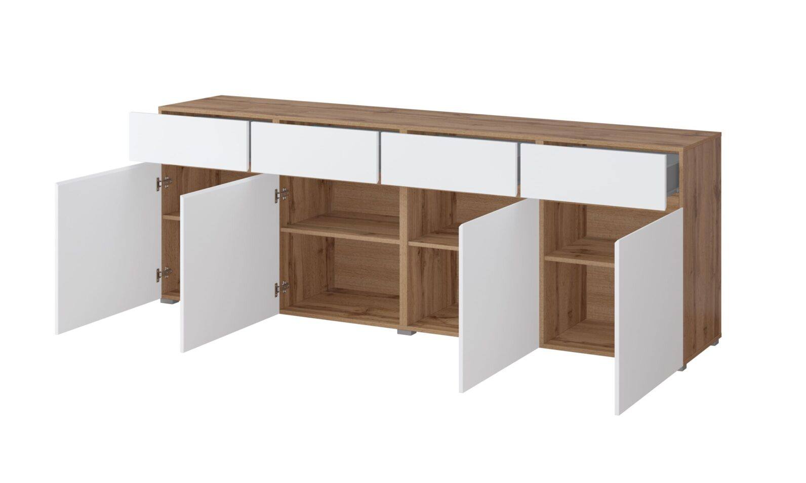 Aparador Cross Branco Laminado com quatro portas e quatro gavetas.
