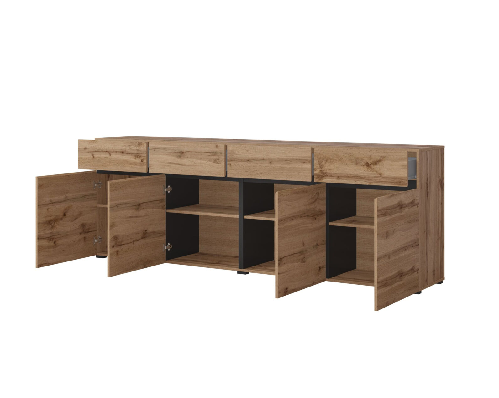 Aparador Cross 2250 em Laminado com quatro portas e quatro gavetas.