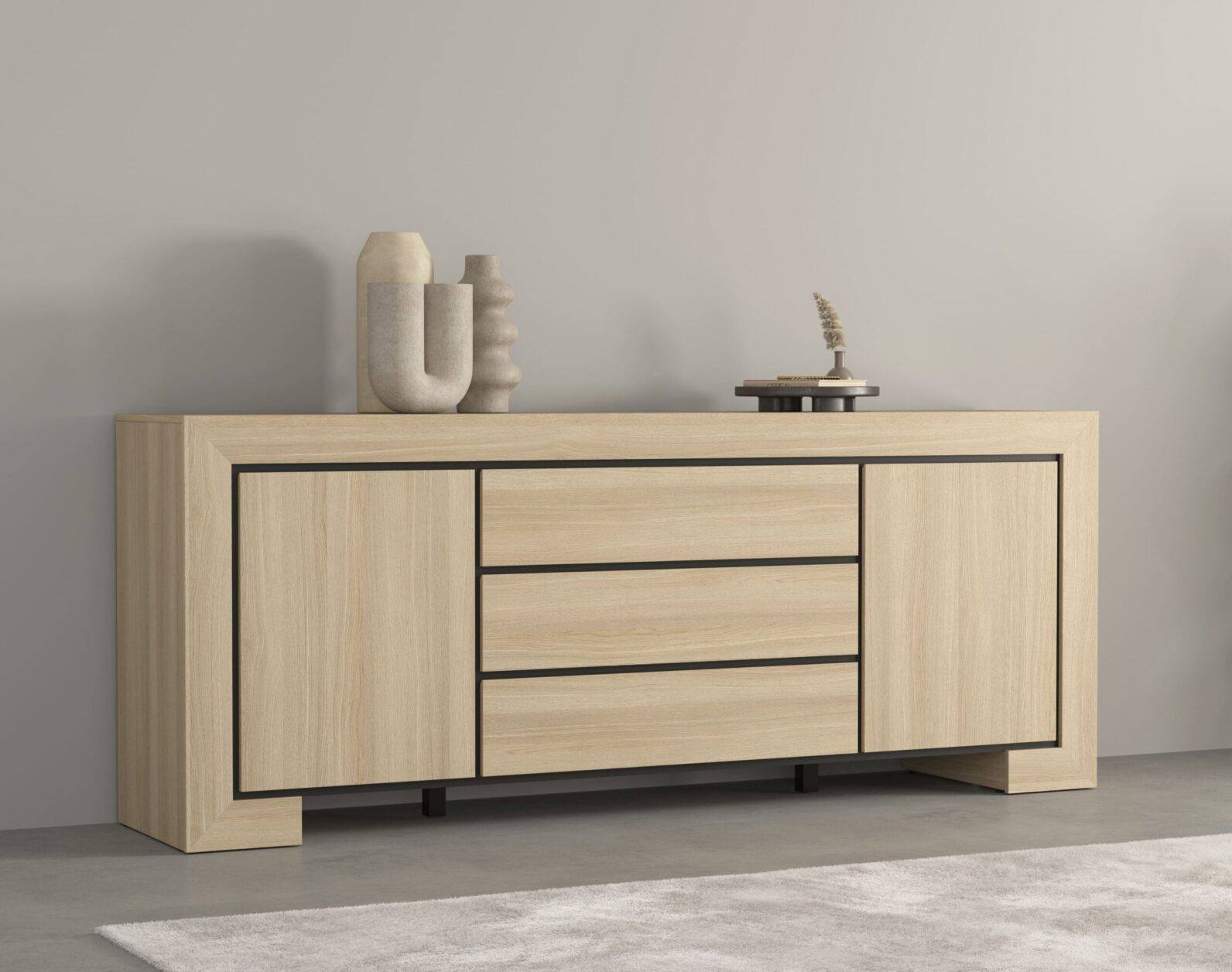 Aparador Cuba II Laminado com duas portas e três gavetas.