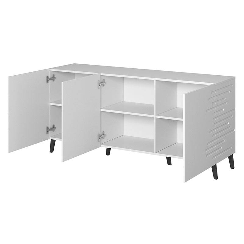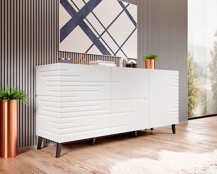Sem puxadores (as frentes sobressaem ligeiramente para permitir abertura).