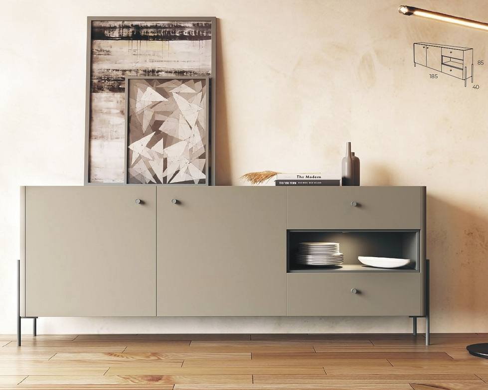 Aparador Nala com duas portas e duas gavetas em Lacado com pés em metal.