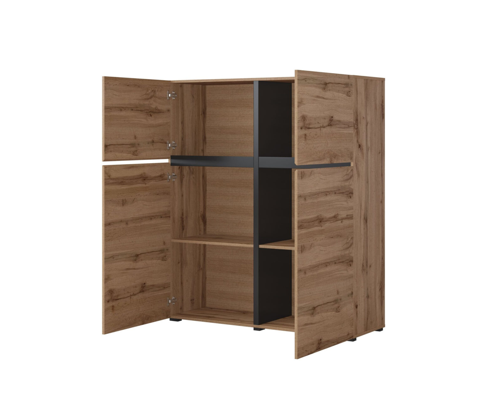 Corpo: aglomerado laminado de 16 mm + MDF de 16 mm