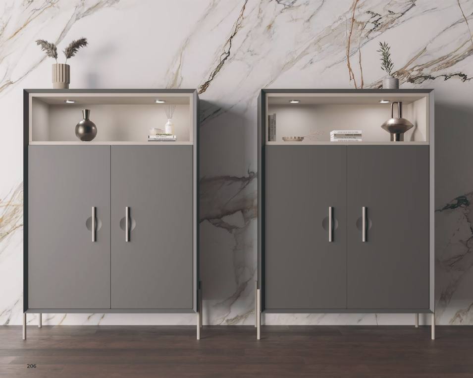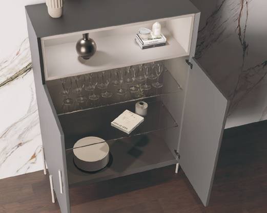 Bar Klassic com duas portas e um nicho em Lacado Mate com pés em alumínio.