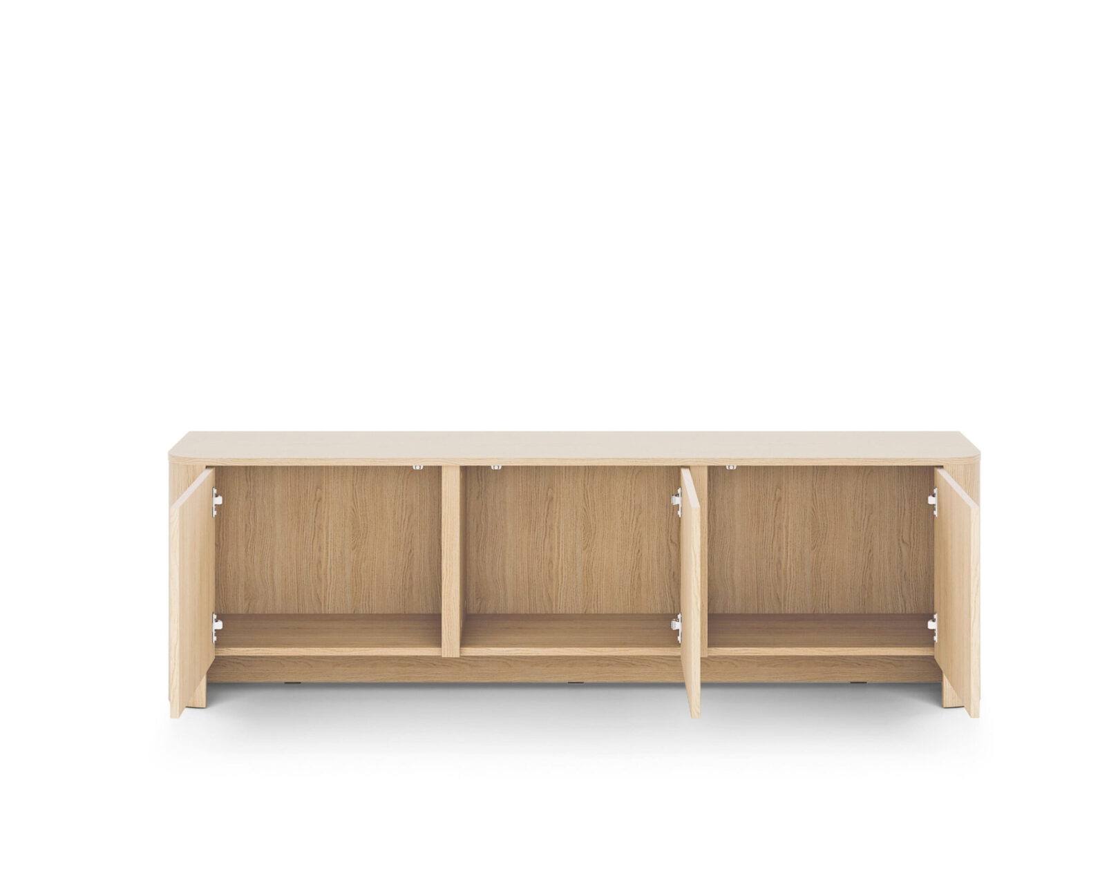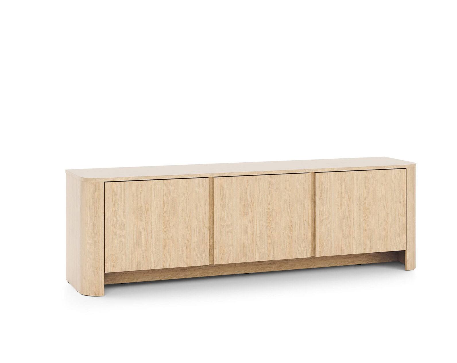 Base Tv Bari com três portas com interior amplo para arrumos.