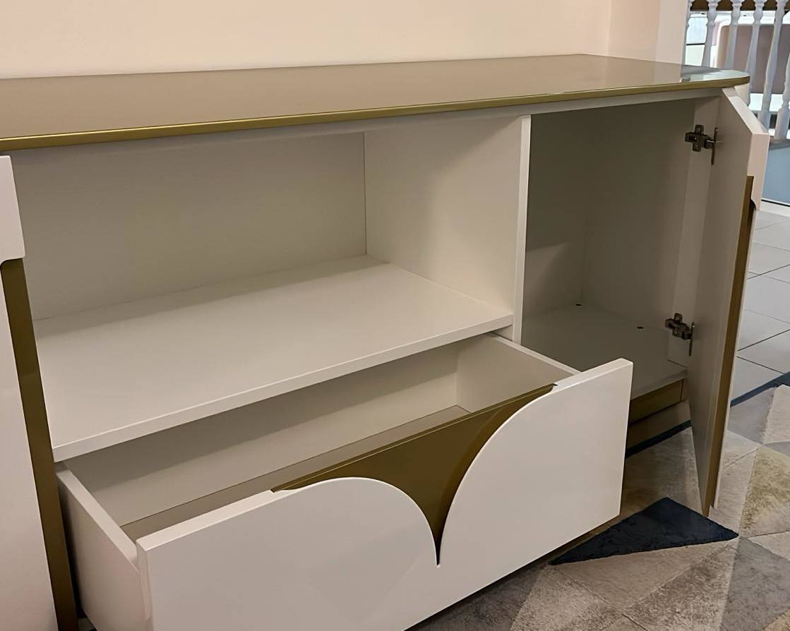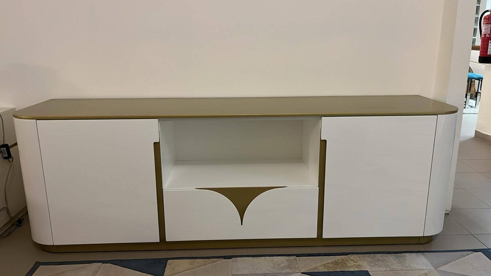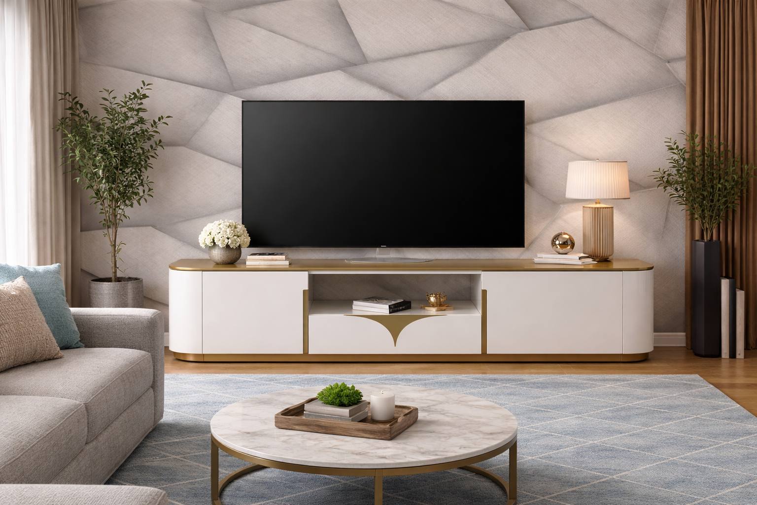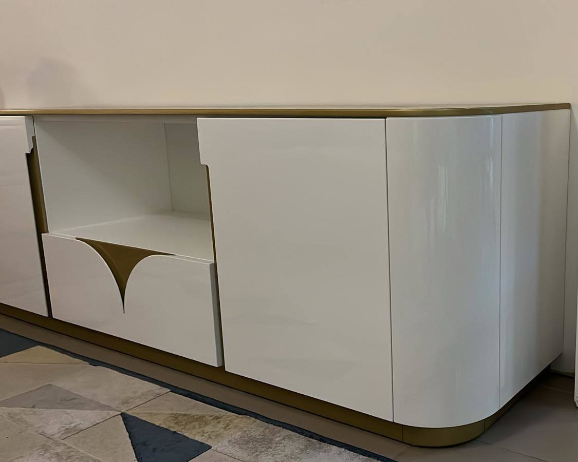 Base Tv Delta com duas portas e uma gaveta com acabamento em Alto Brilho.