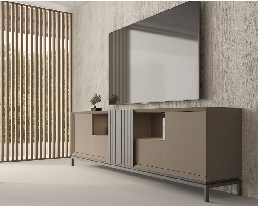 Base Tv Natura 01 com duas portas e duas gavetas em Lacado Mate.