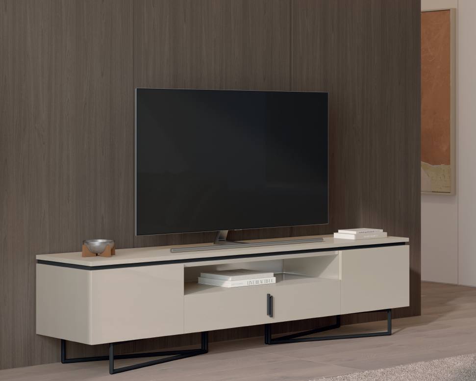 Base Tv Nory 40 com duas portas e uma gaveta em Lacado Mate e pés metálicos.