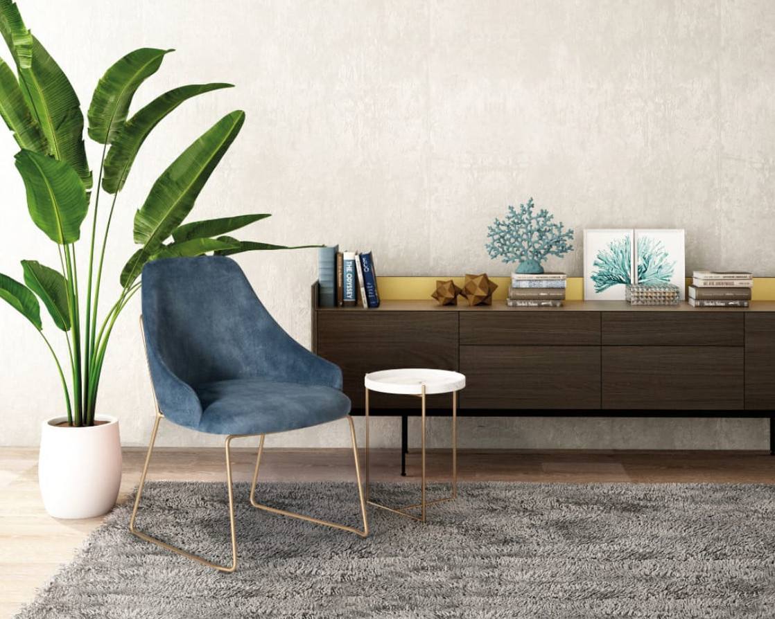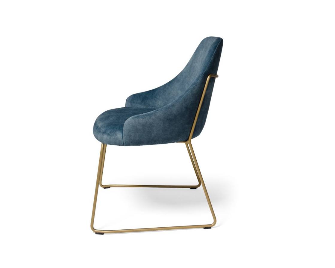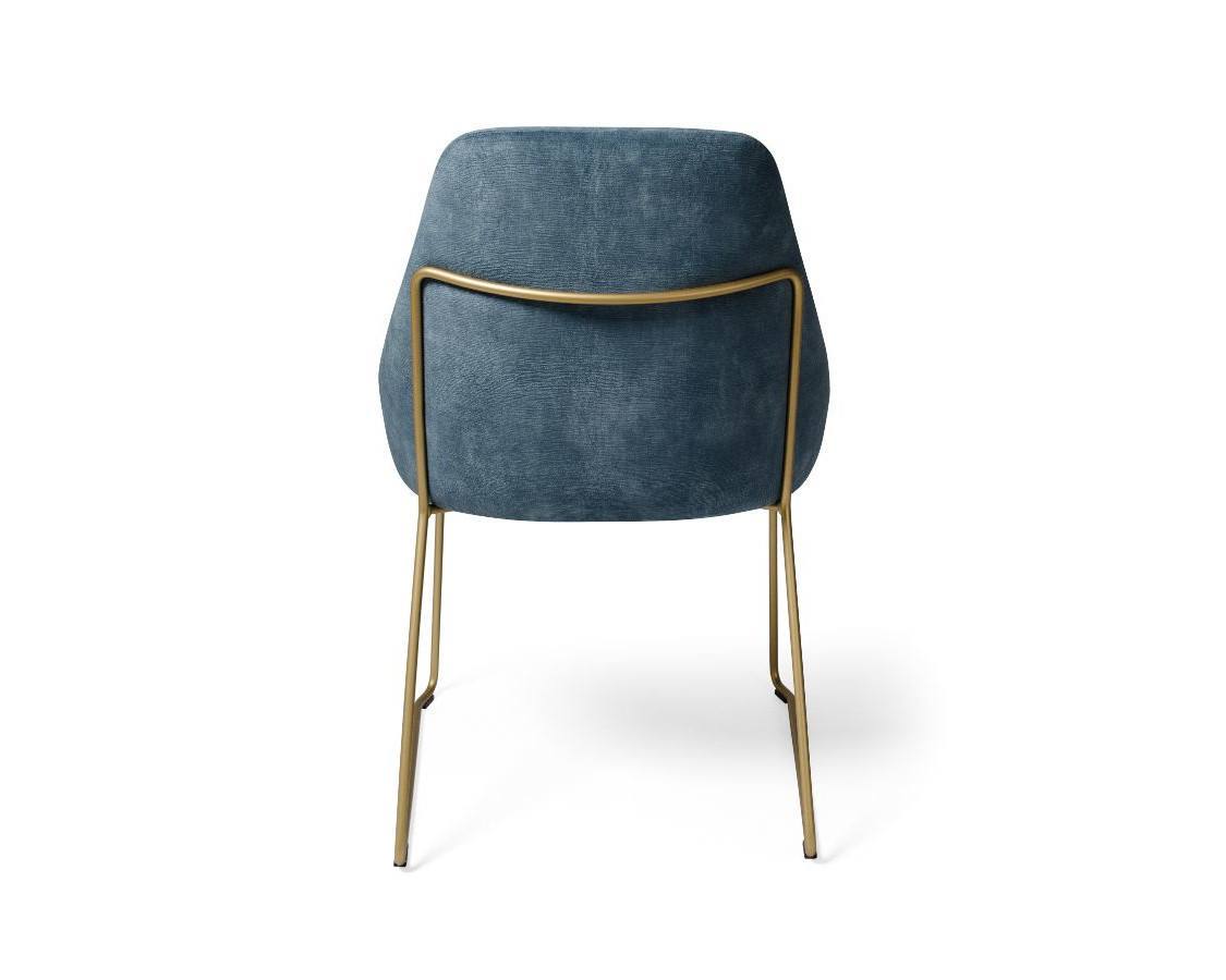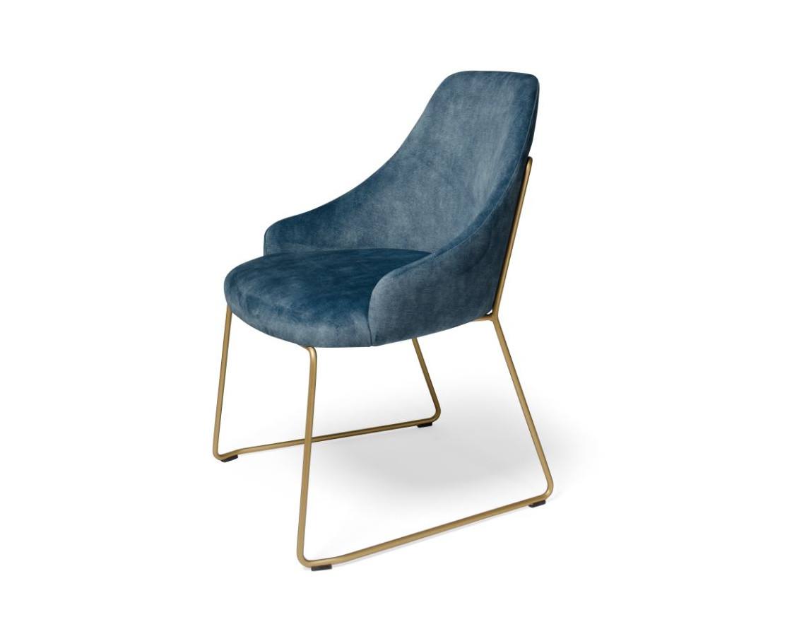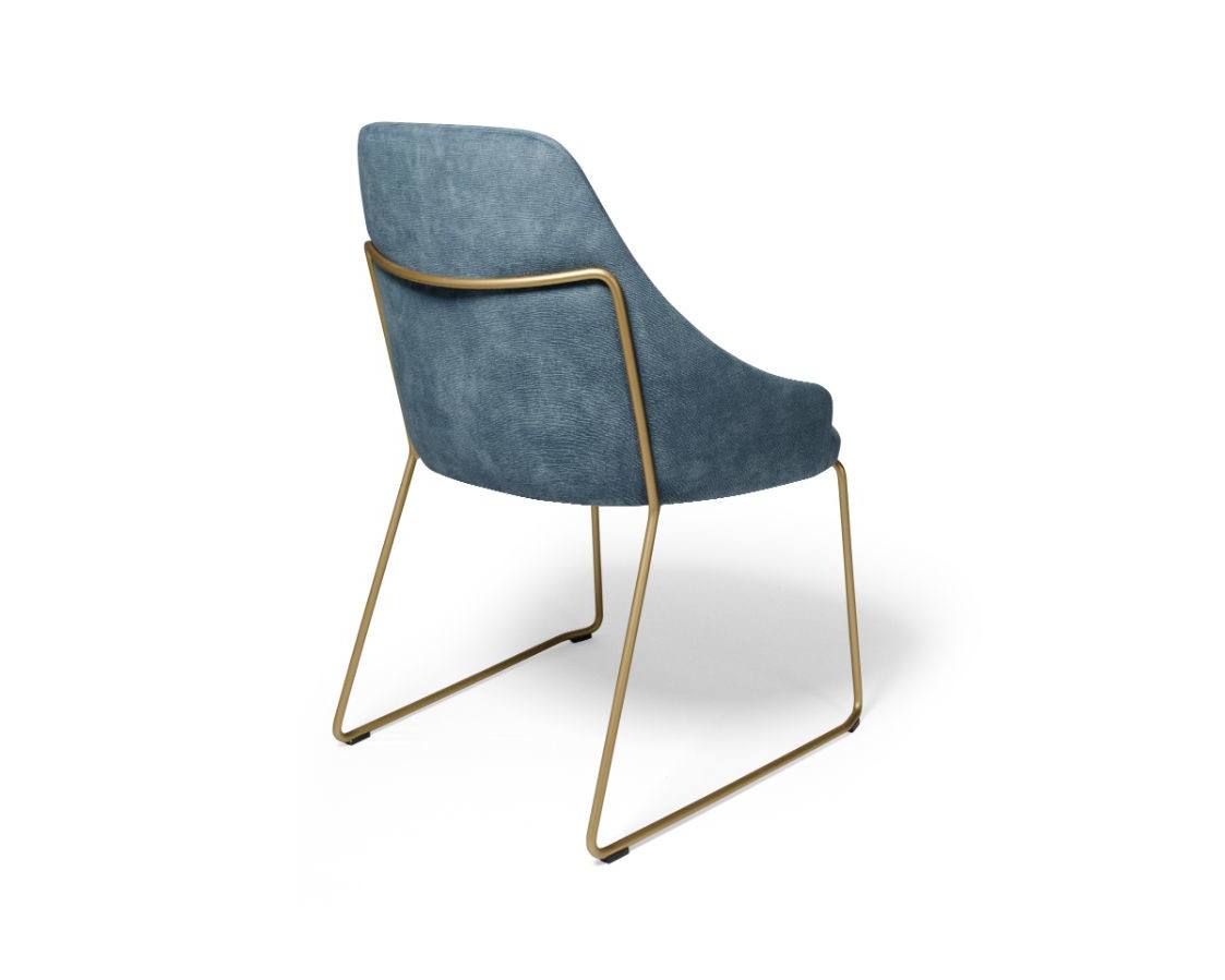 Cadeira Dima com revestimento em tecido e pés em Metal Dourado.
