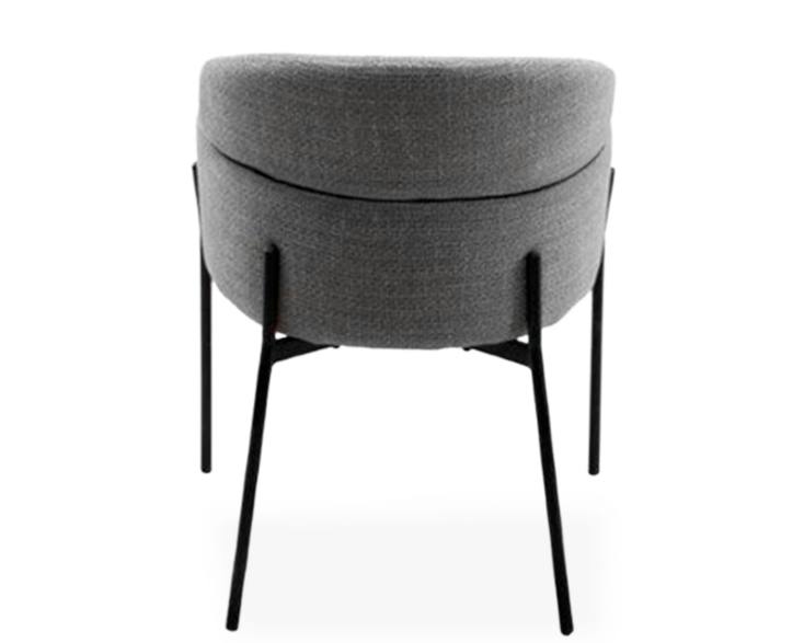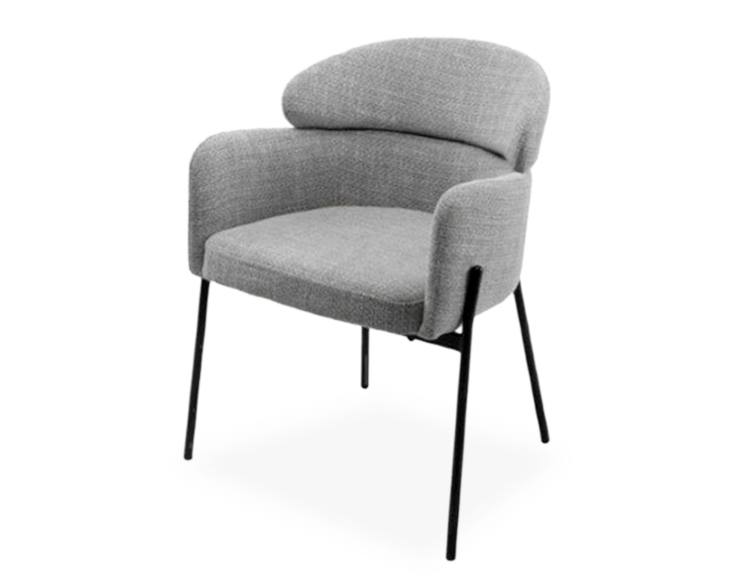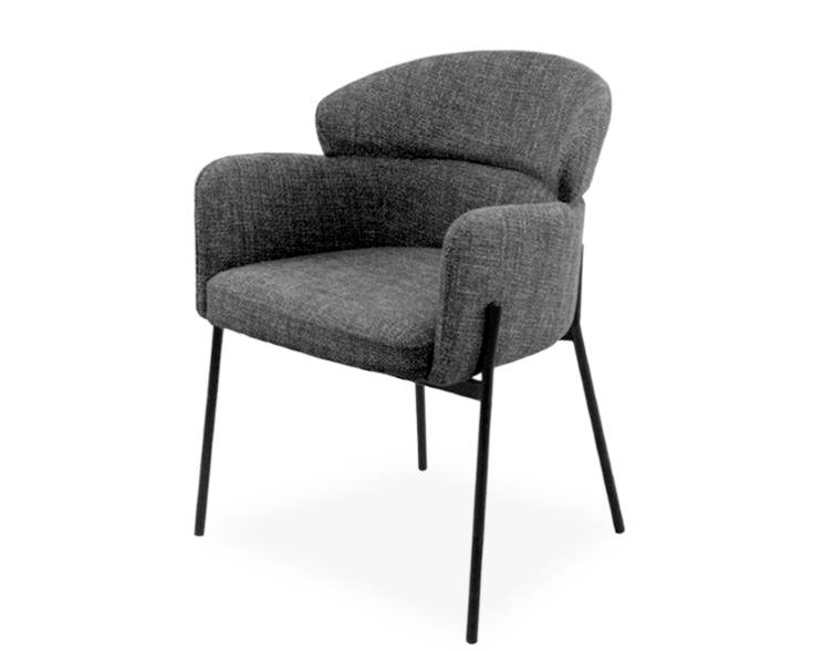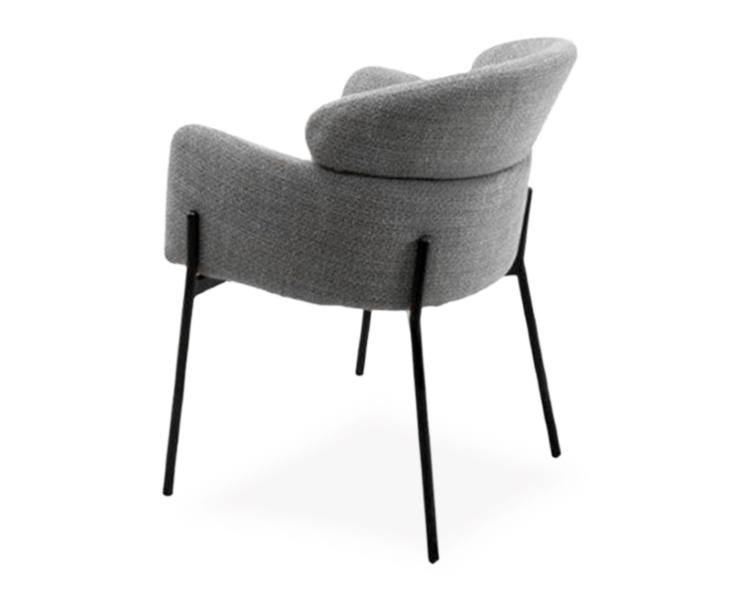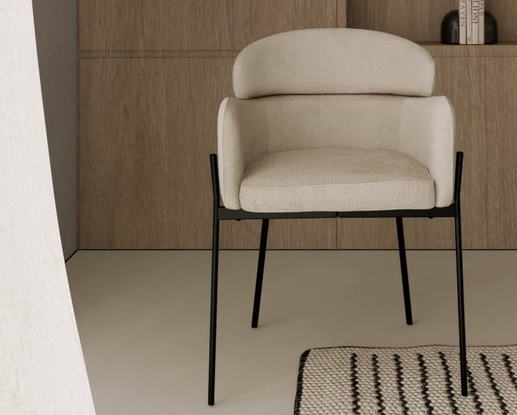 Cadeira Sally possui um encosto duplo e apoios de braços acolchoados, proporcionando conforto e apoio.