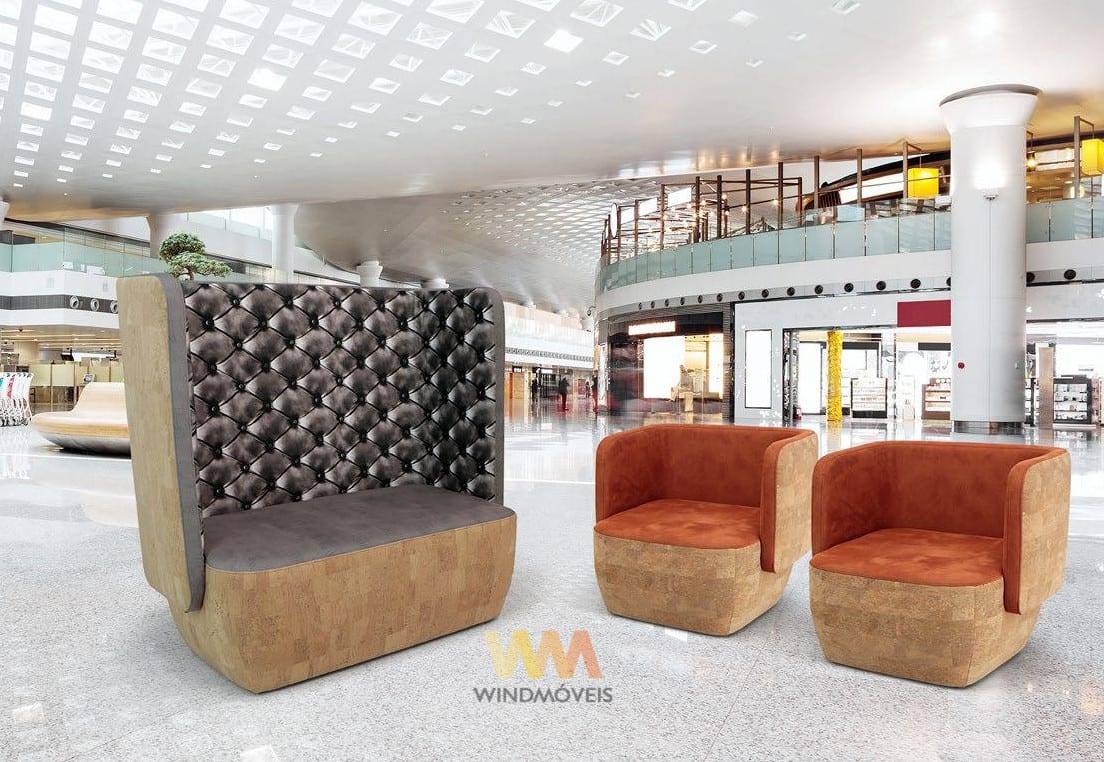 Cadeirão Belair, costa alta com estrutura em madeira, almofadas de alta densidade.