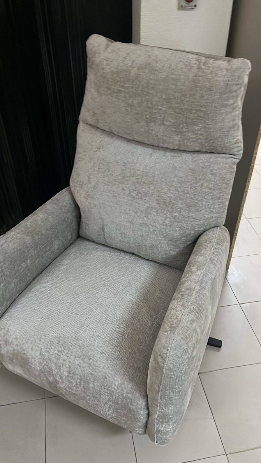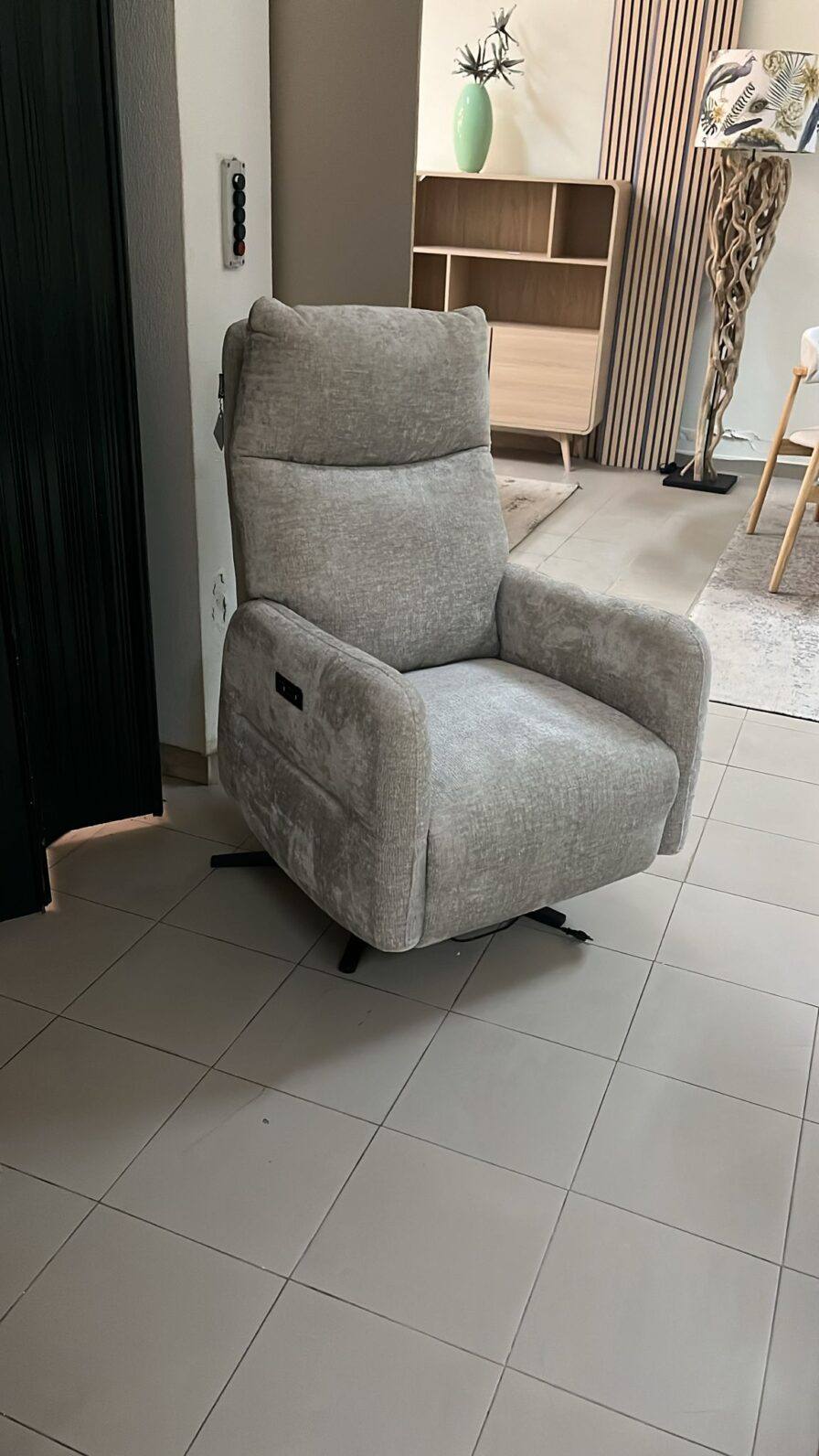 Cadeirão elétrico Mercury com revestimento em tecido cinza com sistema relax elétrico com dois motores.