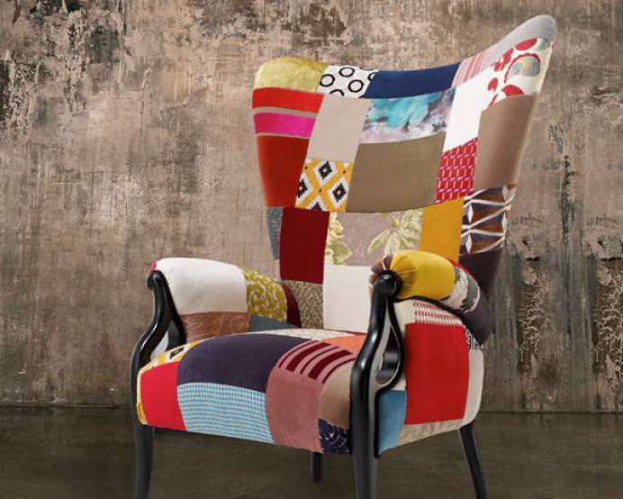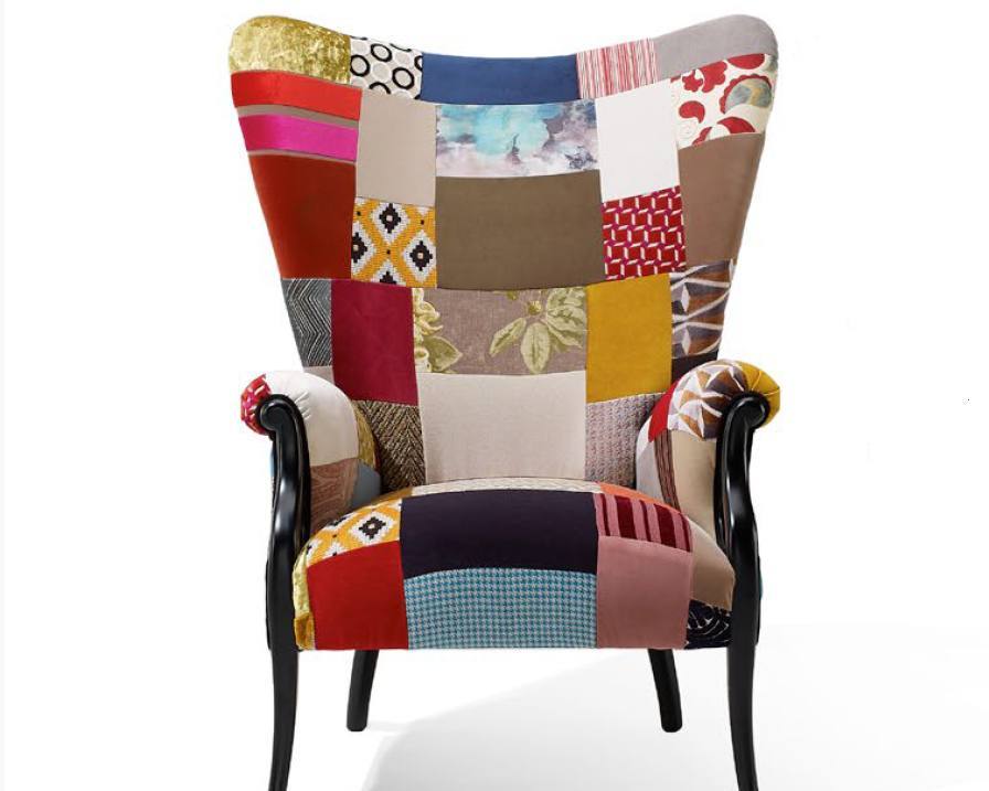 Cadeirão Oslo com tecido Patchwork e pés em Lacado Mate Preto.