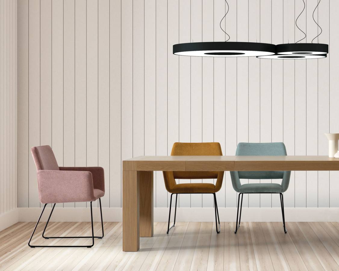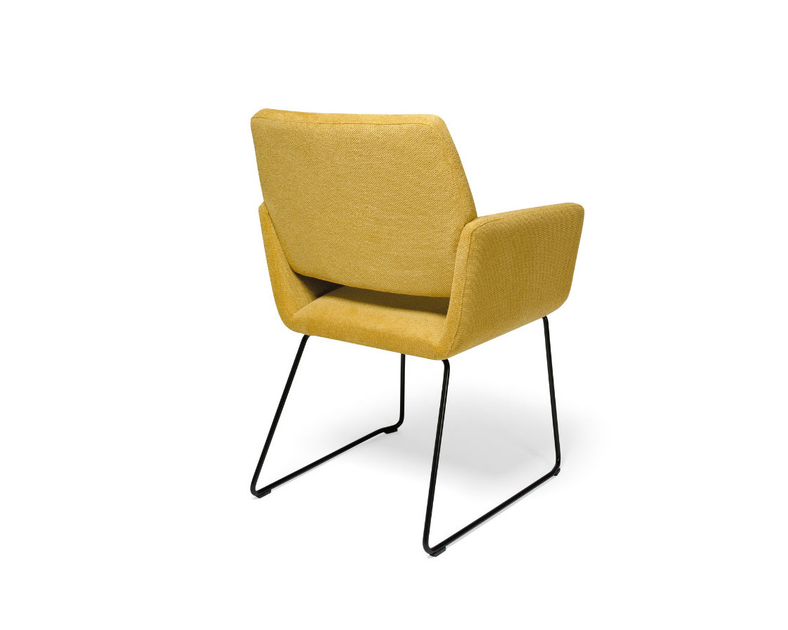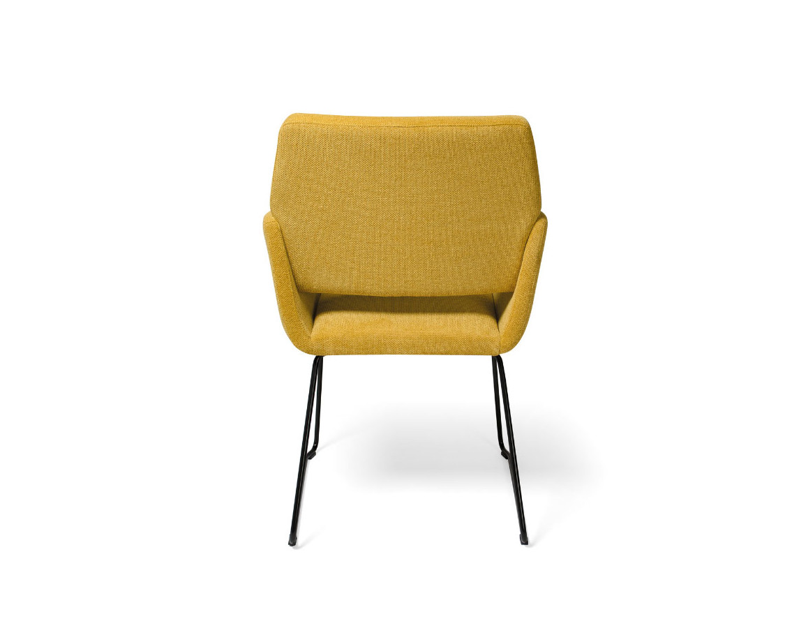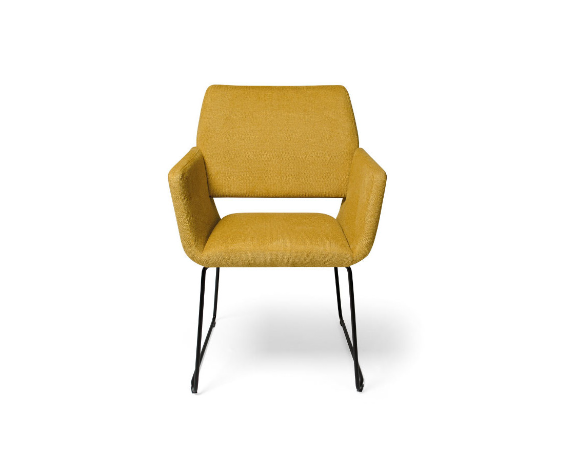 Cadeirão Sintra com assento e costa em tecido pés metálicos.