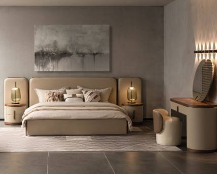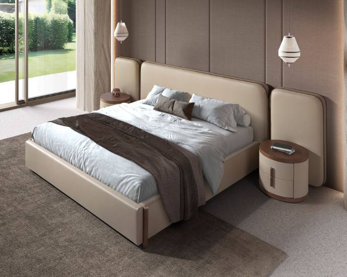 A Cabeceira com painéis laterais rebatíveis oferece um plus de conforto e funcionalidade, criando um ambiente mais íntimo e sofisticado onde o design e o bem-estar se unem à perfeição.