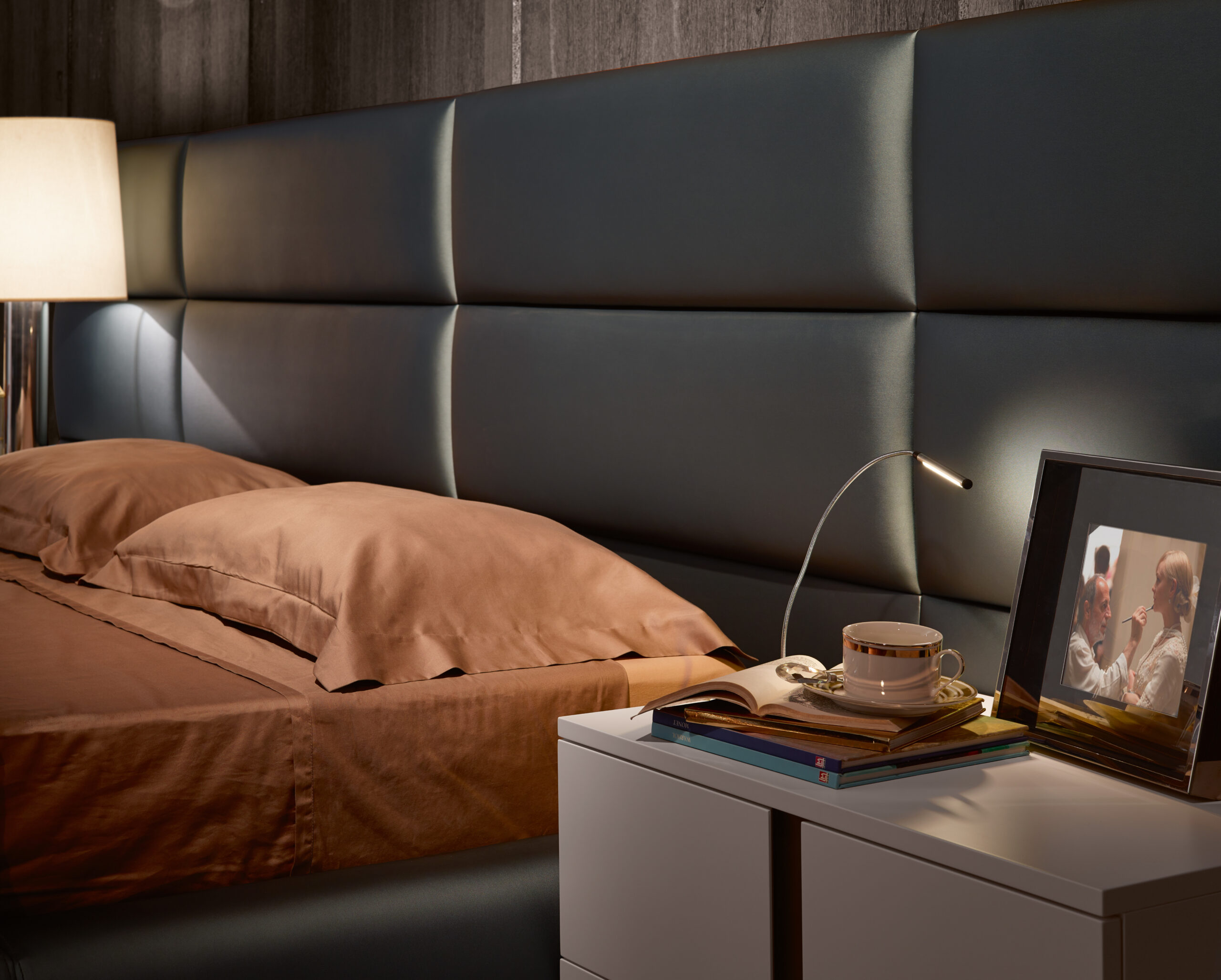 Cama de Casal Keiko KS com painéis com revestimento em tecido.