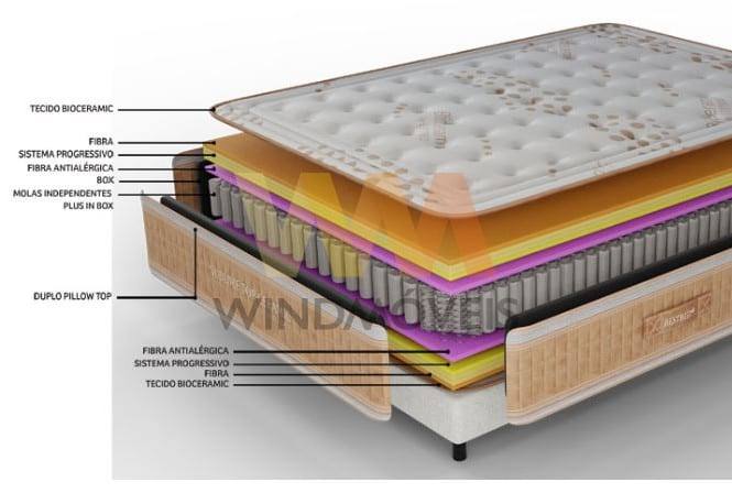 Colchão Sublime Top Ceramic BestBed, atinge o expoente máximo do conforto e descanso ao combinar o duplo pillow top, o tecido Bioceramic e as molas independentes plus in box.