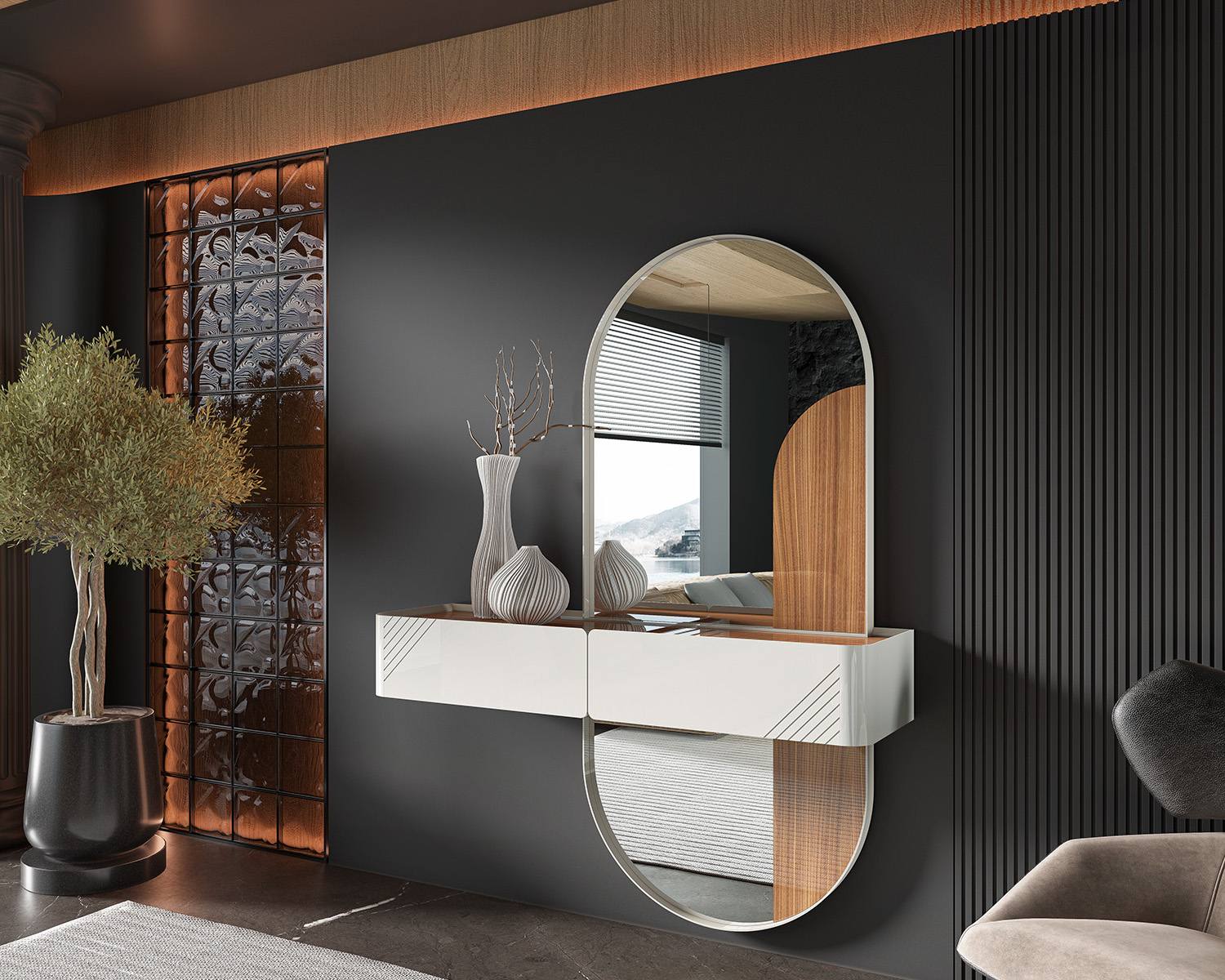 Consola Barcelona com duas gavetas em Lacado Mate e Espelho.