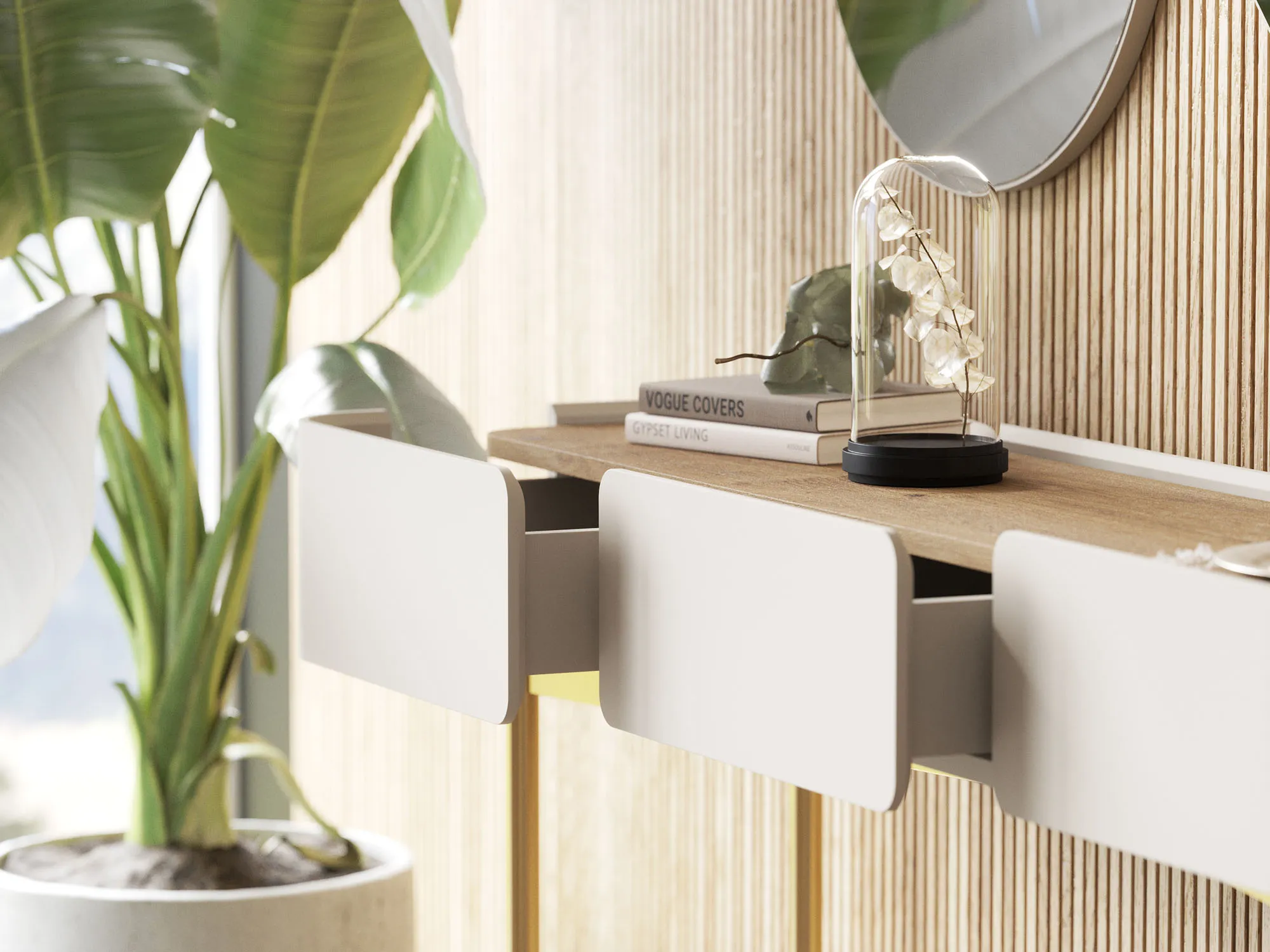 Cores apresentadas na imagem – N46- Carvalho Rústico / N62- Madras Mate / N52- Dourado.