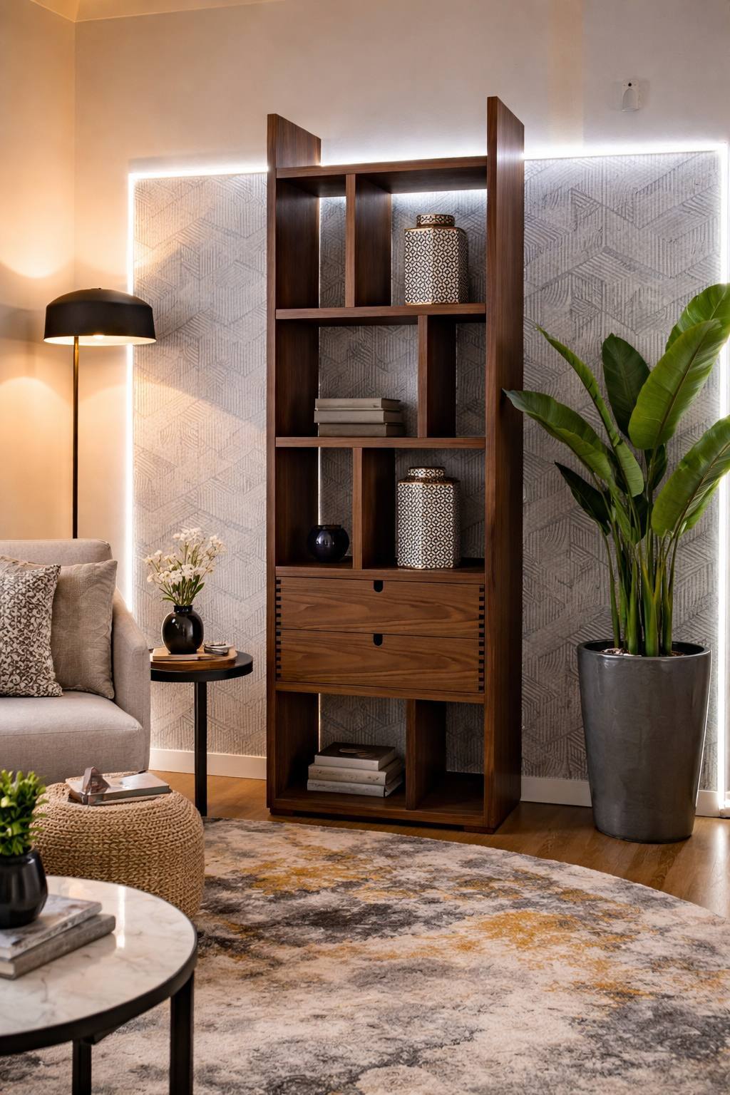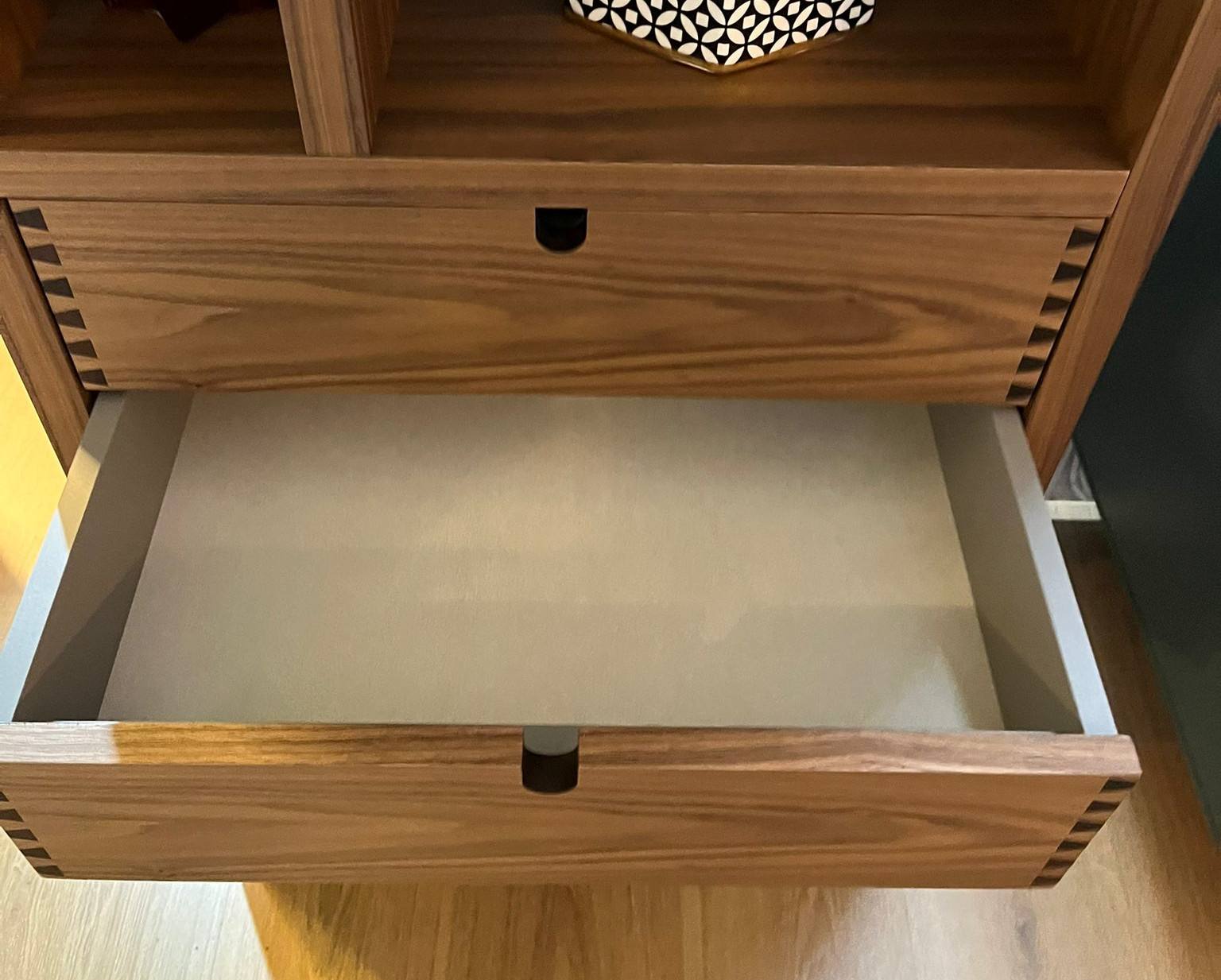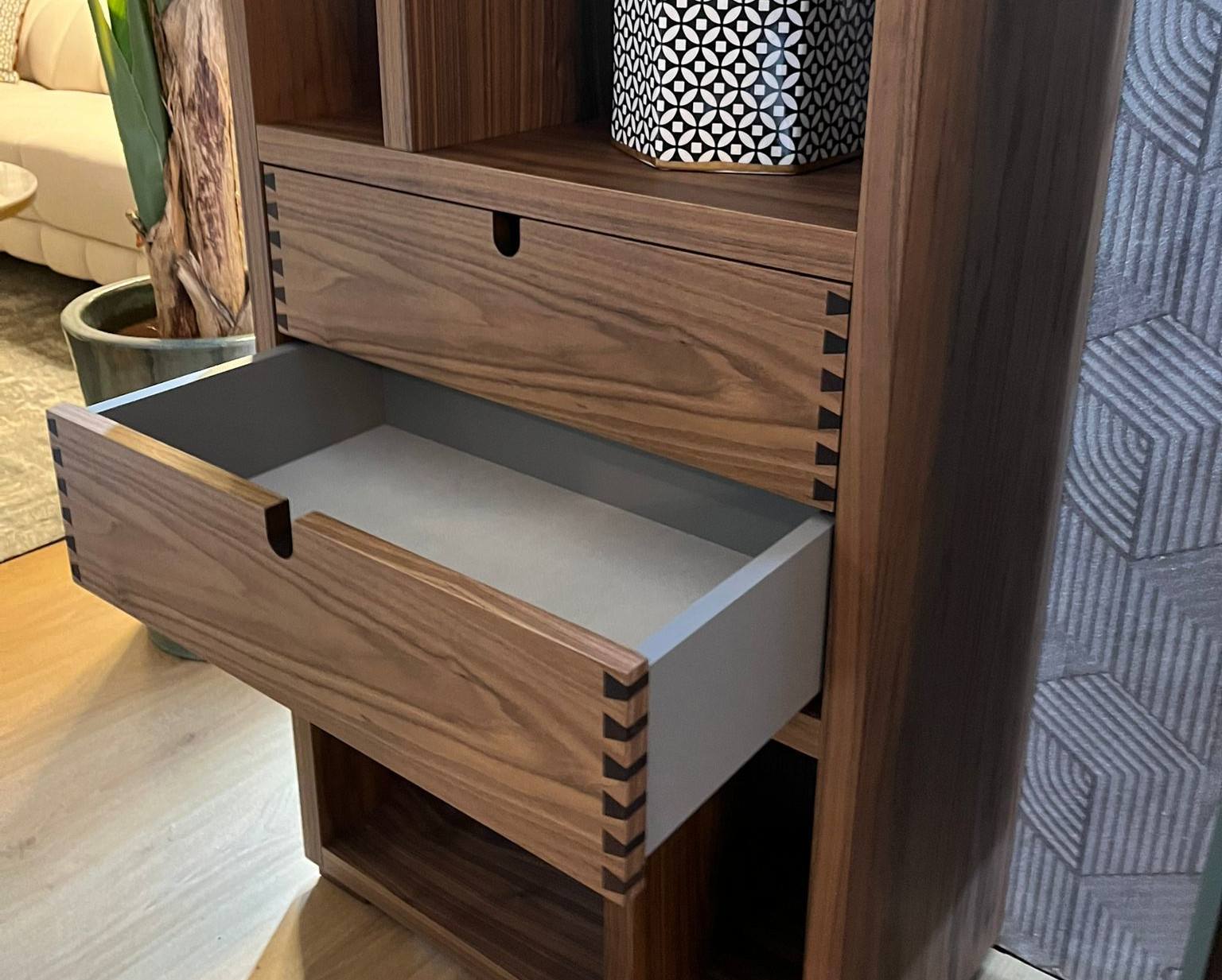 Estante EEVE com duas gavetas em Nogueira.