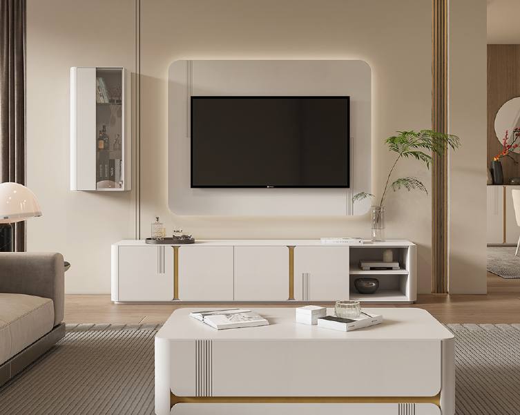 1x Base Tv com quatro portas e um nicho aberto;