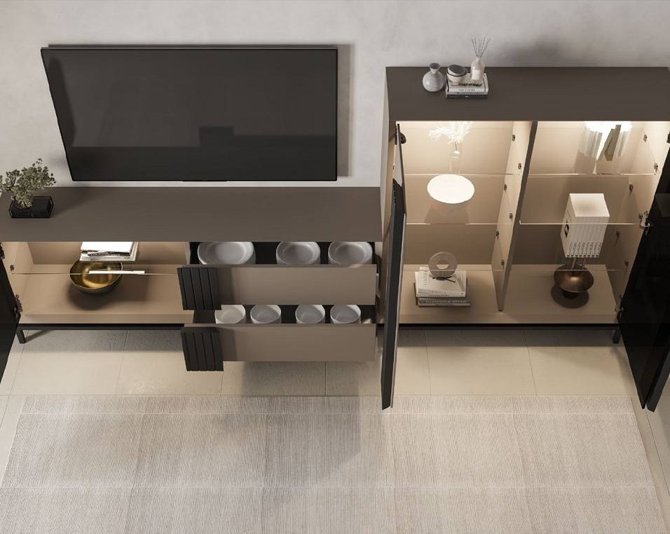 1x Base Tv com duas gavetas e uma porta de vidro;