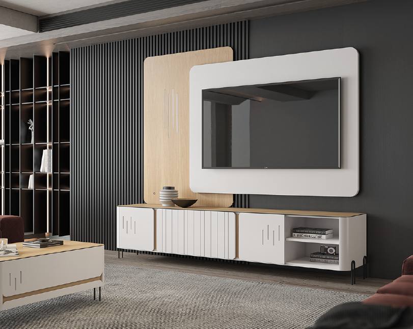 Estante Nova York modelar em Lacado 9010 e Carvalho.