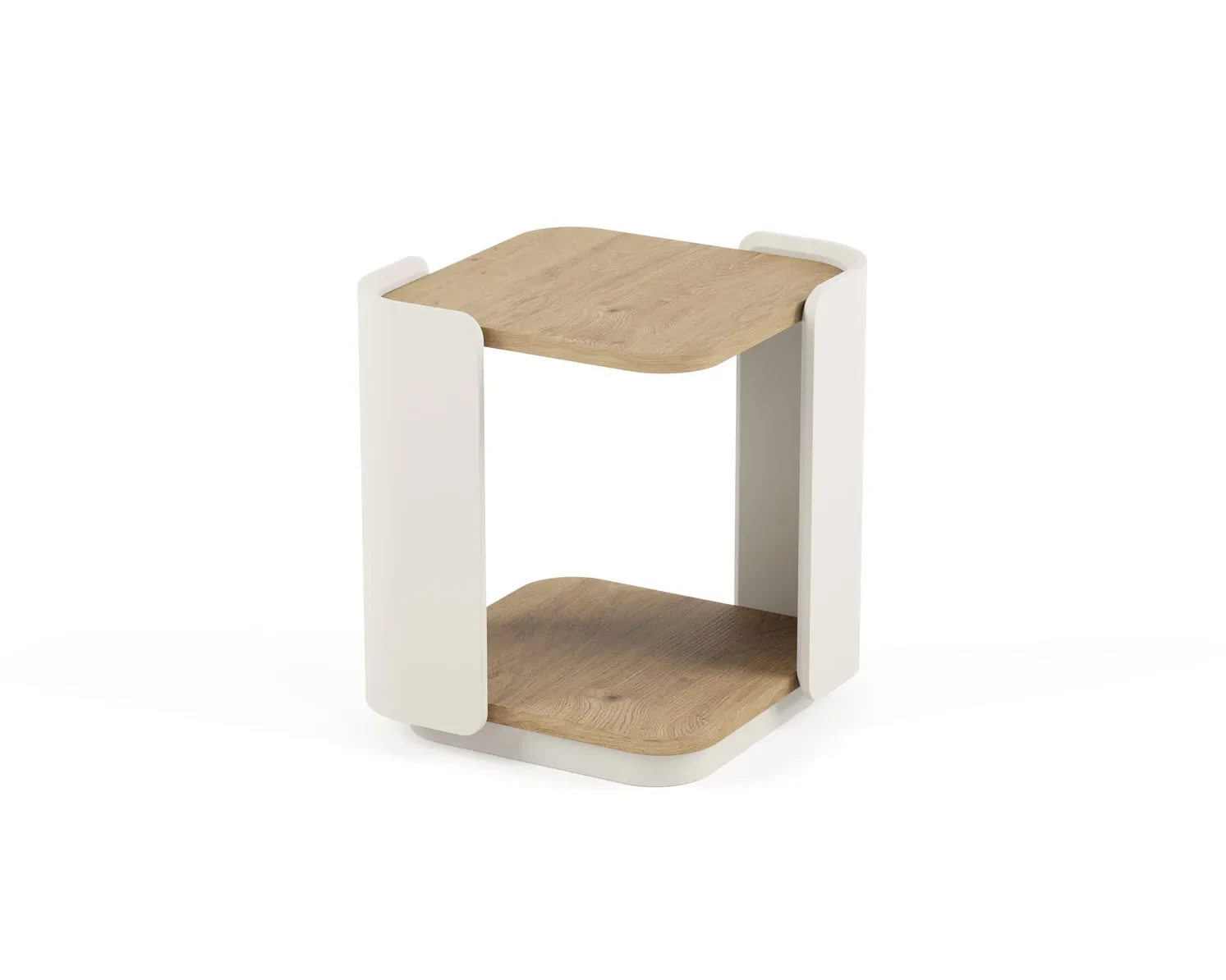 Mesa Apoio Soho com tampo quadrado em madeira com estrutura em Lacado.