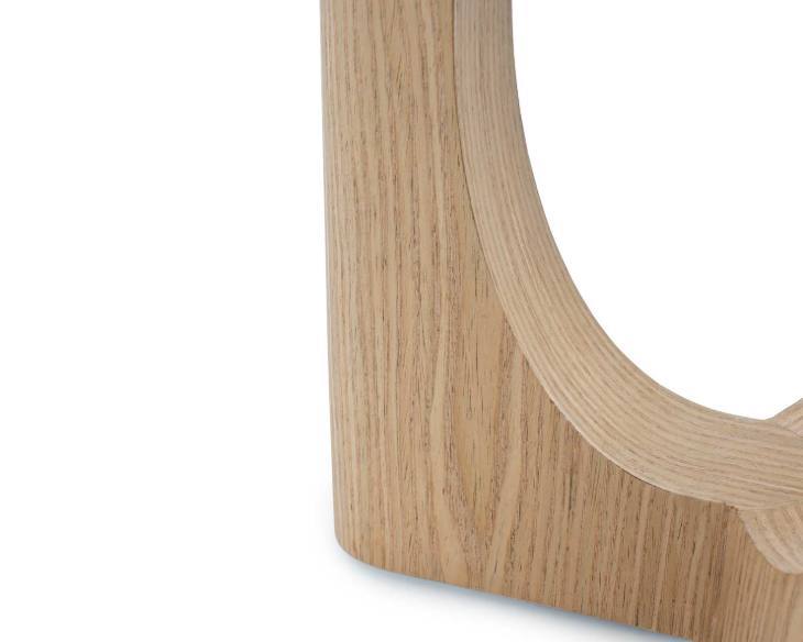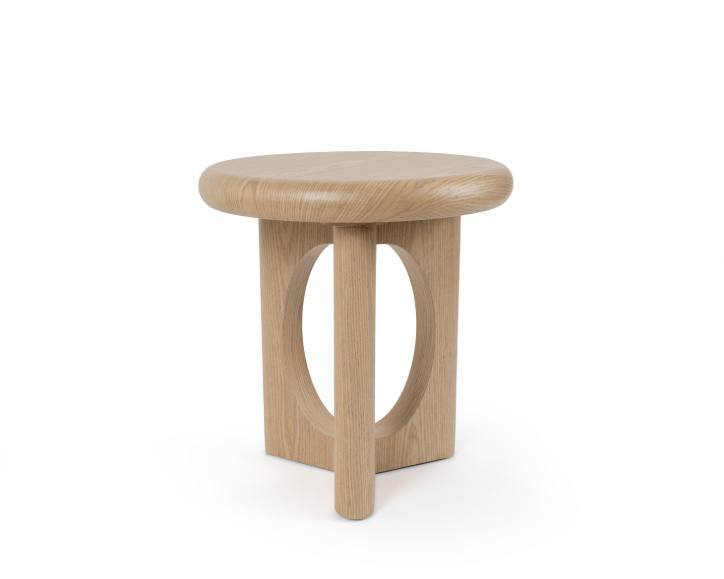 A mesa de apoio ARNAUD 50 destaca-se pelo seu design compacto e base geométrica com abertura circular, um detalhe que confere leveza visual e torna a estrutura o ponto focal da peça.