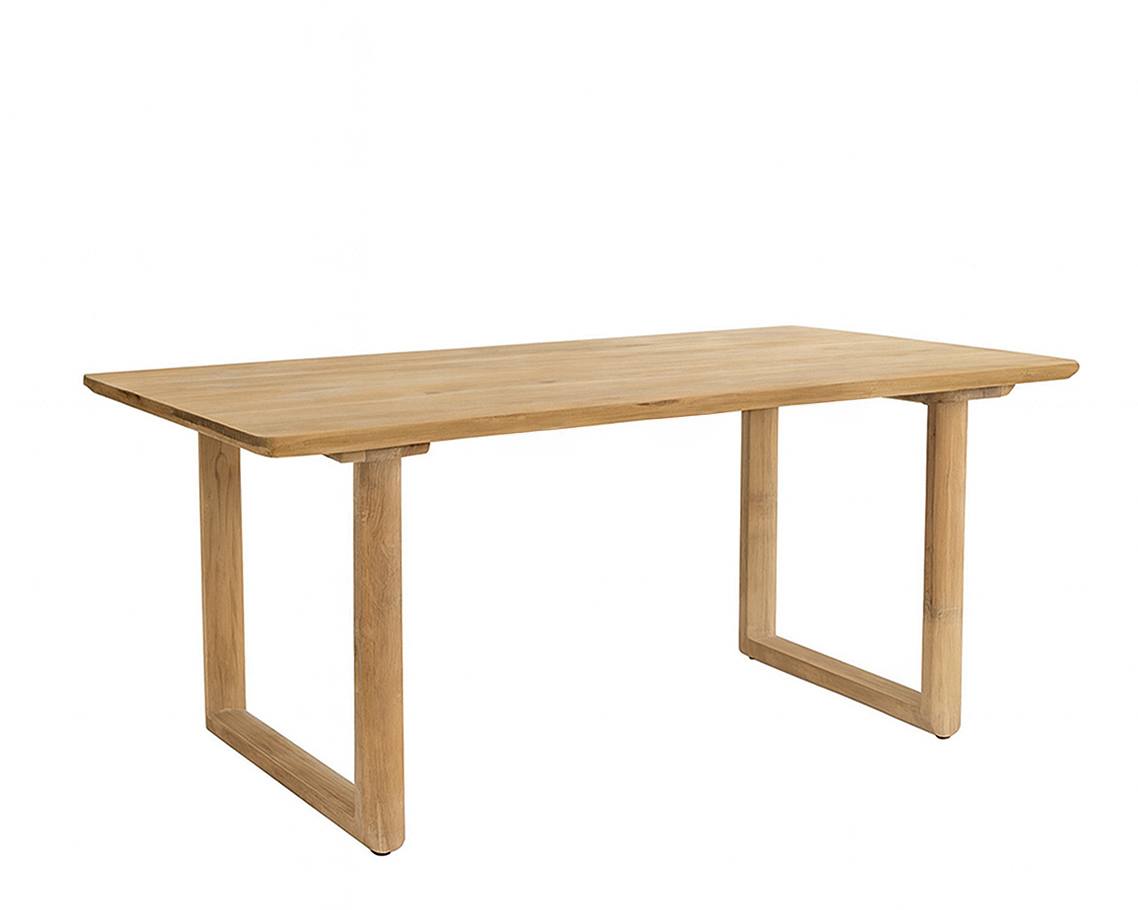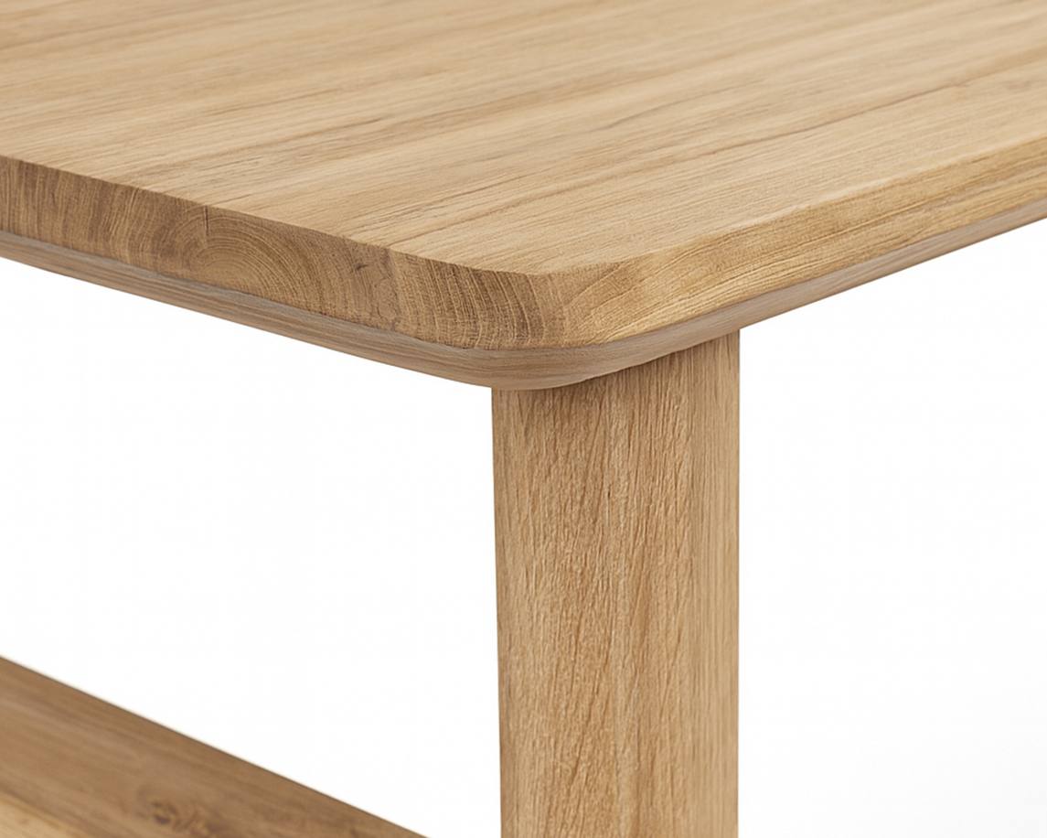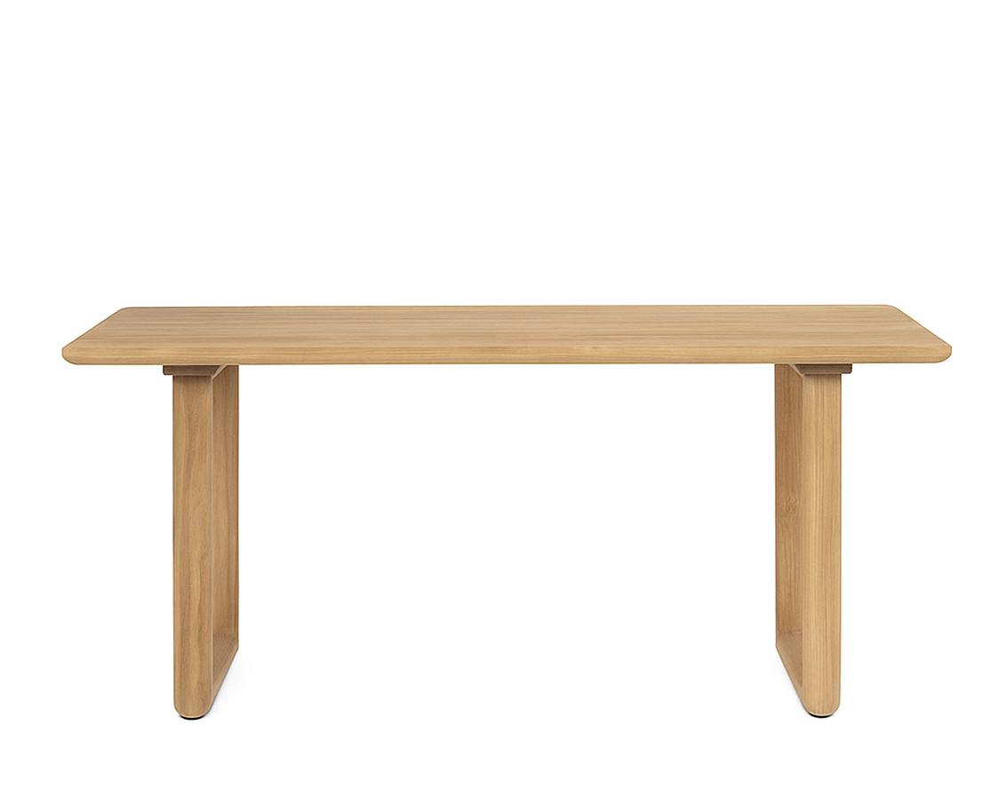 Mesa Eyre com tampo retangular fixo em madeira maciça.