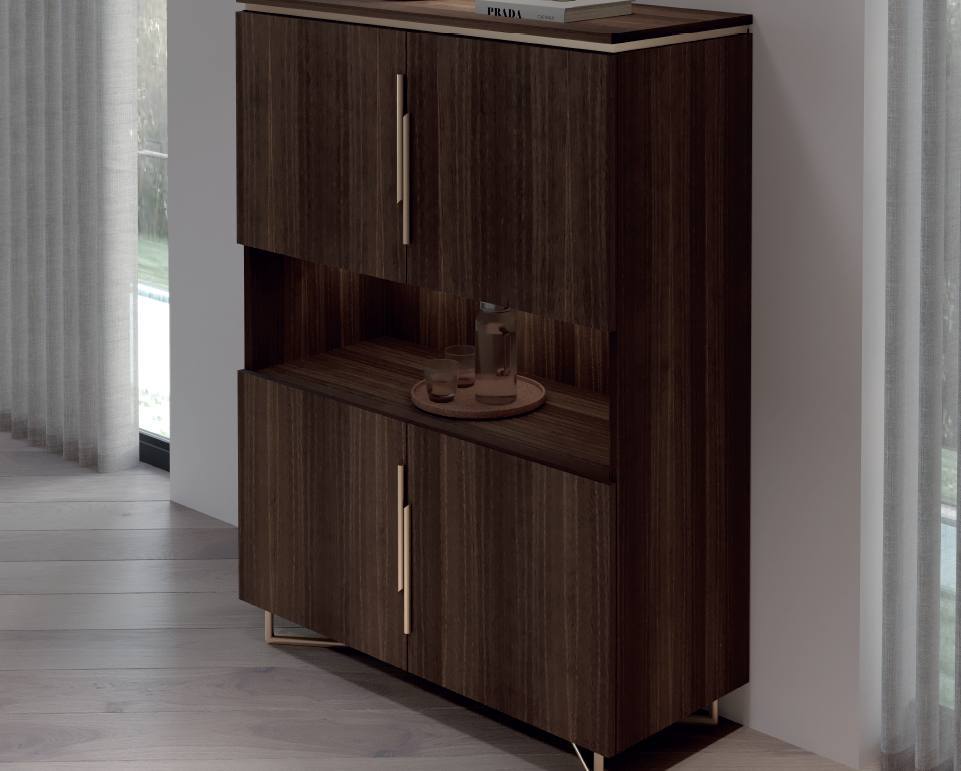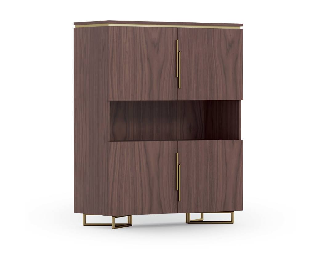 Móvel Bar Nory em madeira de Nogueira e pés metálicos Dourados.