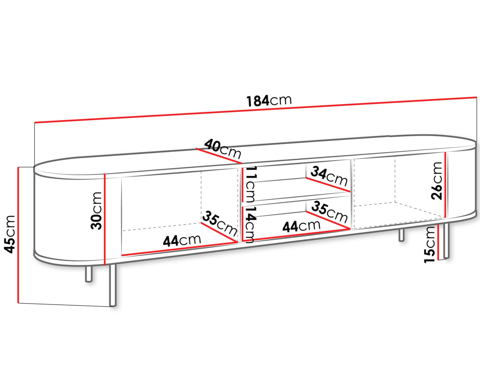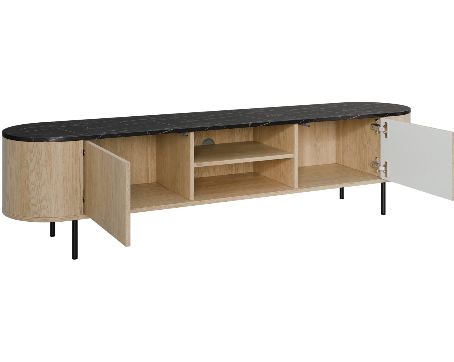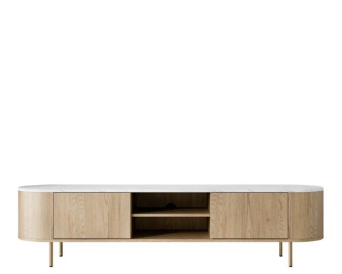 Móvel Tv Lygrint 1800 em Laminado com duas portas e pés metálicos.