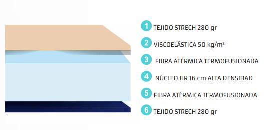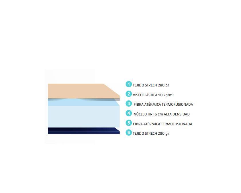 Espuma HR de alta densidade, com 16 cm de espessura.