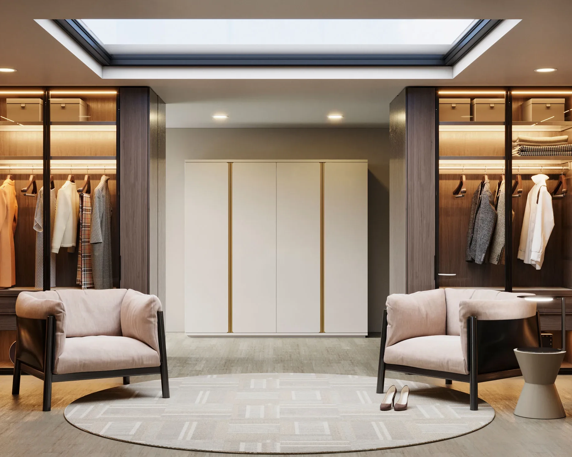 Roupeiro Soho com quatro portas em Lacado e friso em carvalho.