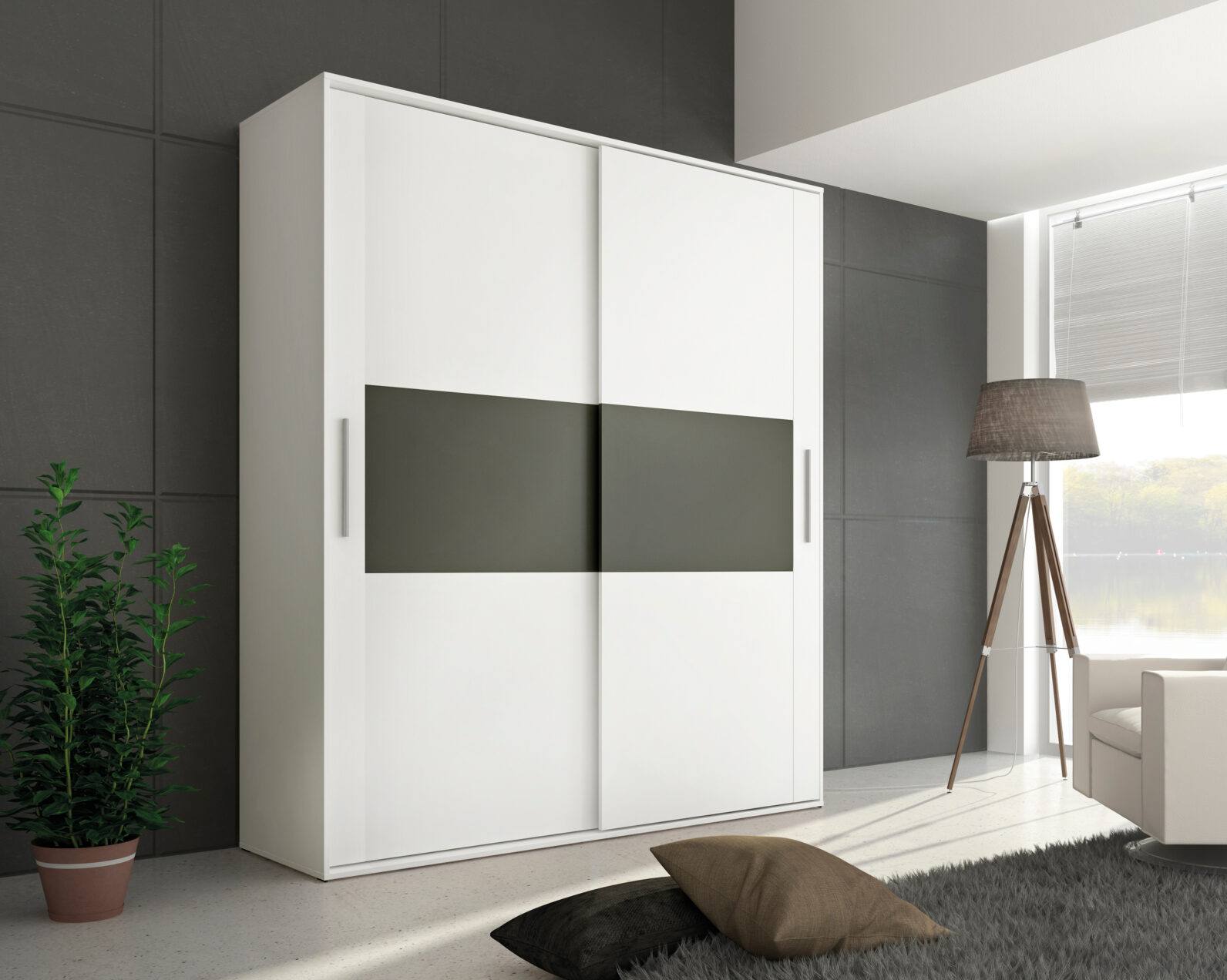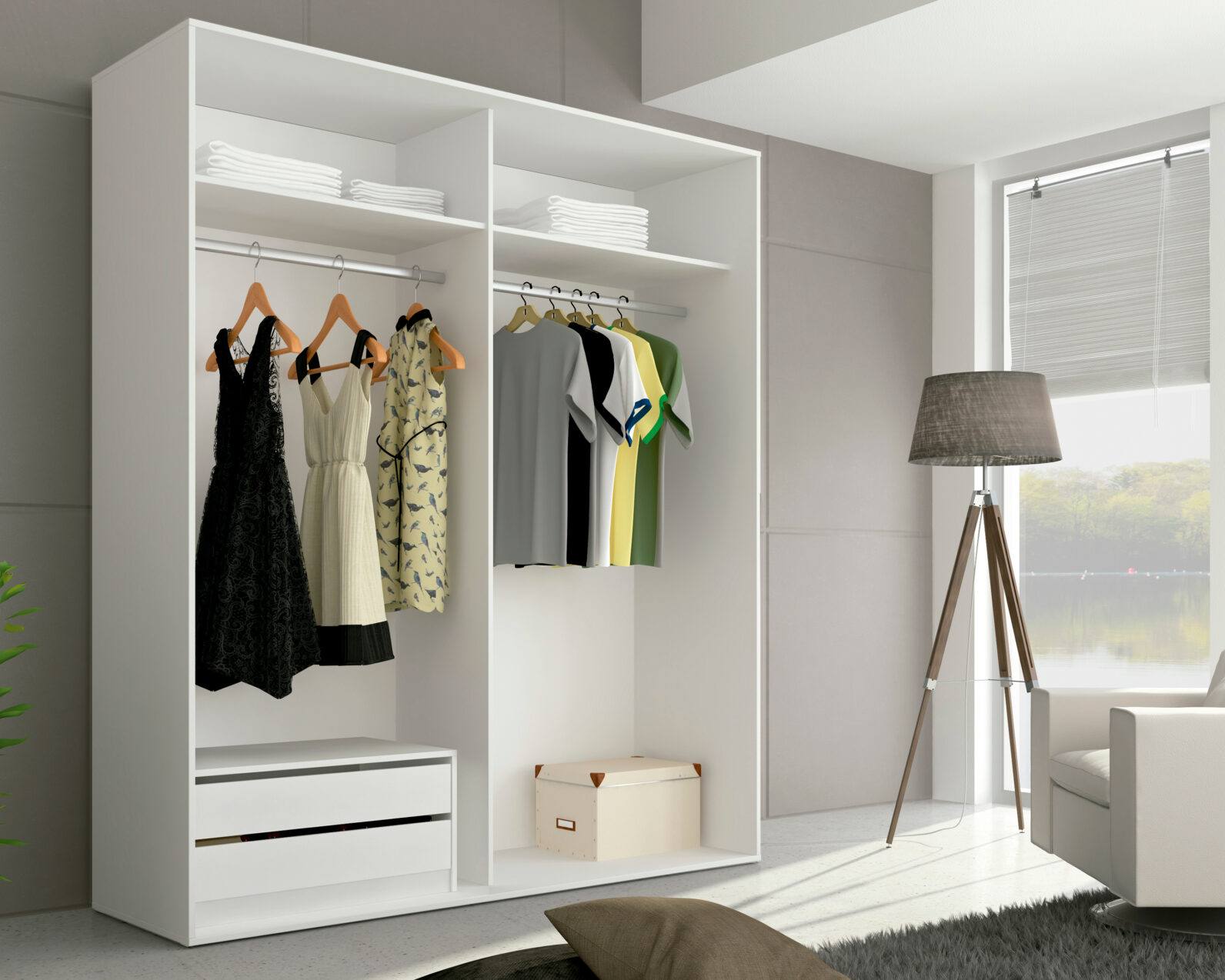 Roupeiro Sta Cruz com portas de correr com um bloco interior de gavetas.