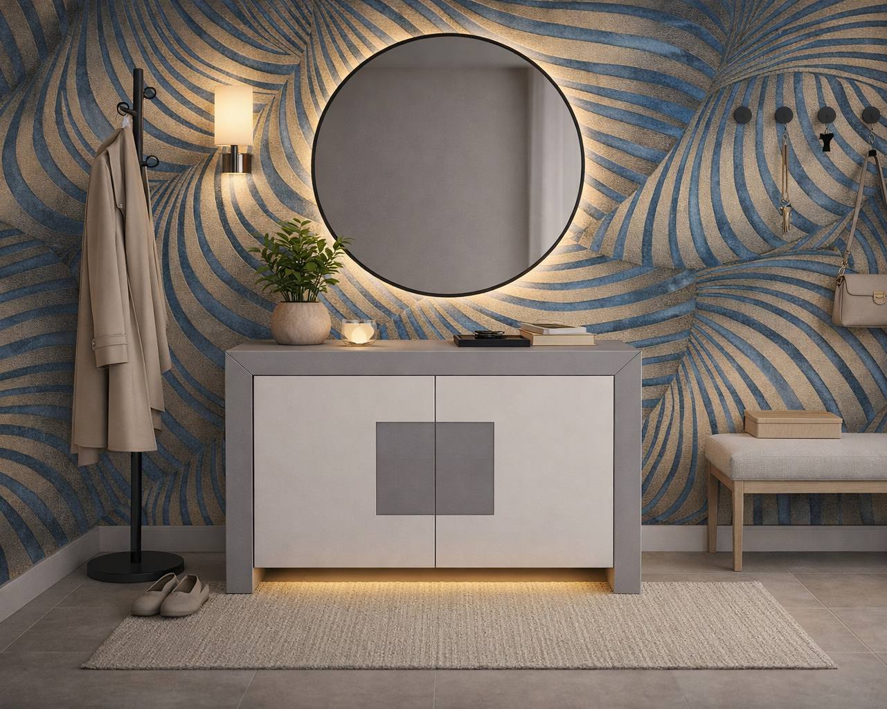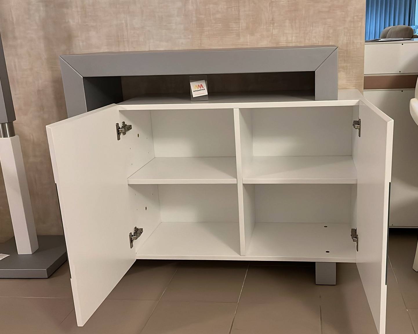 Sapateira 3741A com duas portas e prateleiras no interior em Lacado com pormenores em Inox.