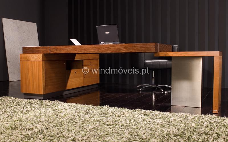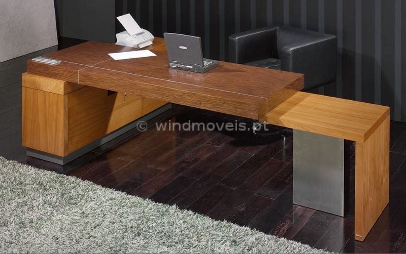 Secretária com estrutura em Cerejeira e tampo em Wenguê Gavgtas no bloco lateral da secretária
