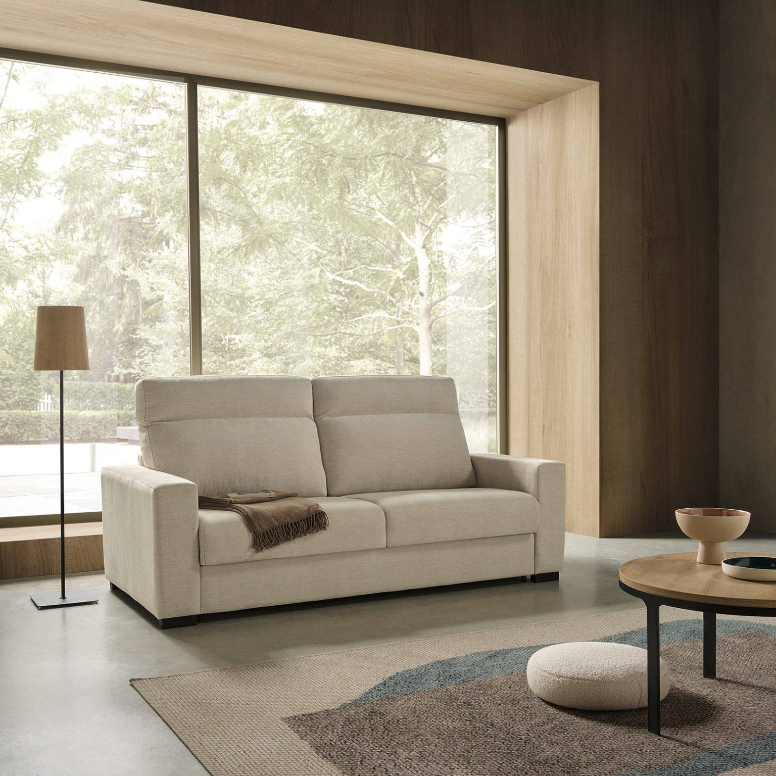 Sofá Cama Crono com mecanismo Italiano – Fabricado em aço eletrosoldado e malha metálica.