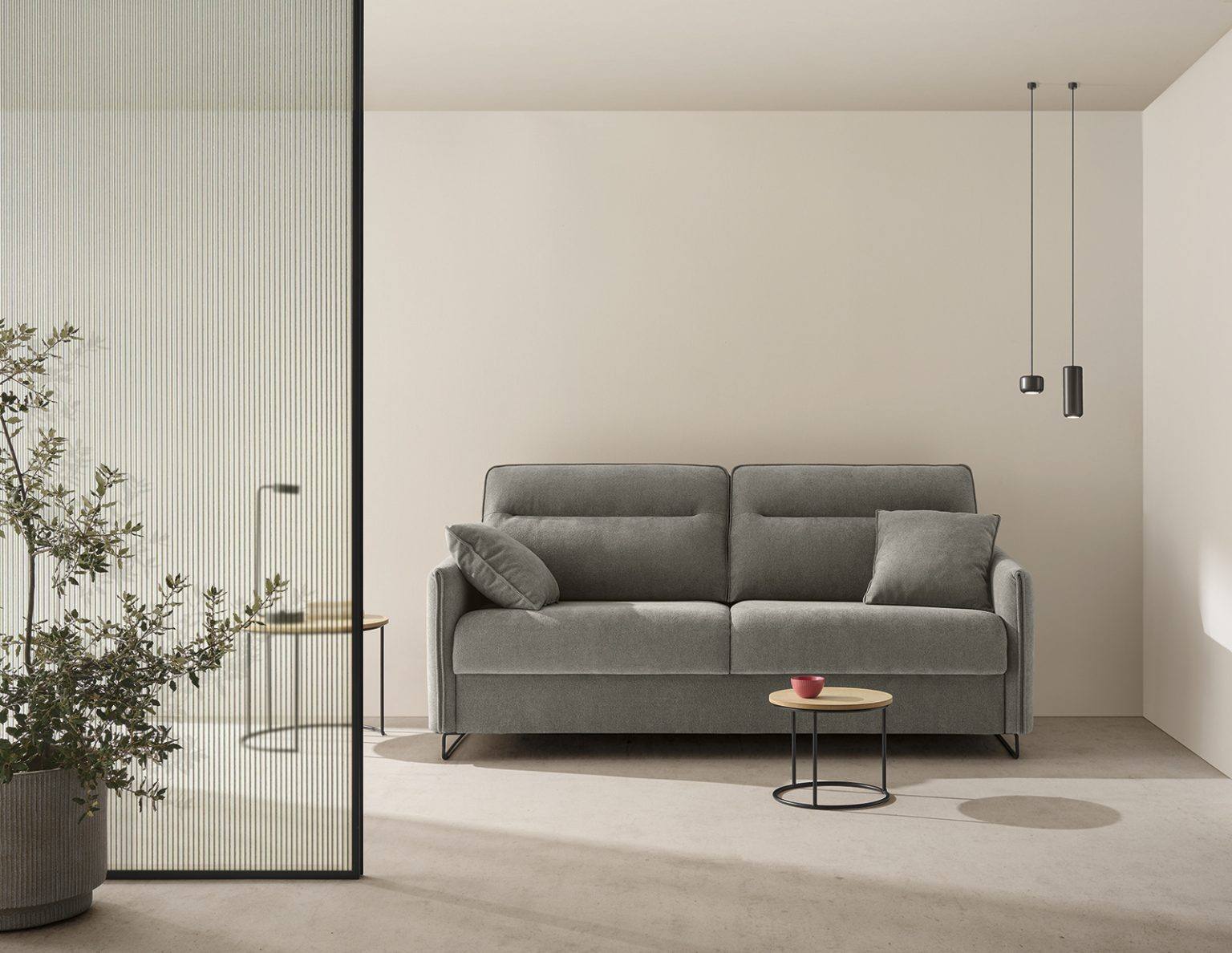 Sofa Cama Tesla com mecanismo cama Italiano – Fabricado em aço eletrosoldado e malha metálica.