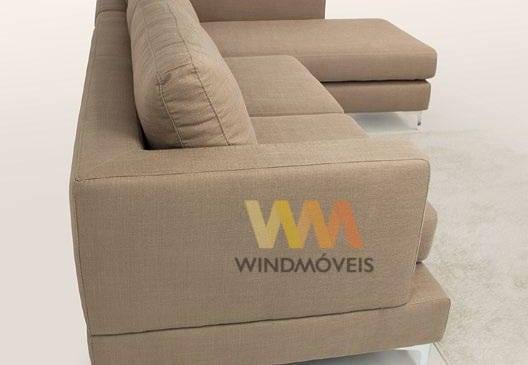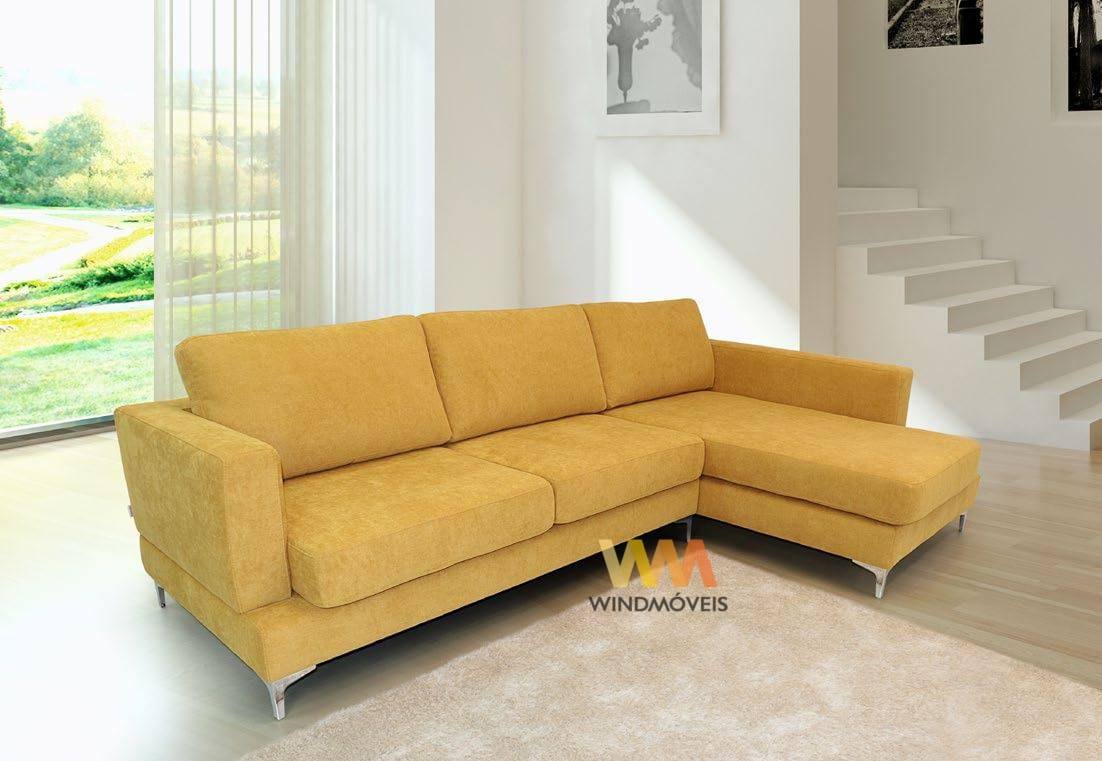 Sofá Chaise Long Arnage com estrutura em madeira, almofadas de alta densidade.