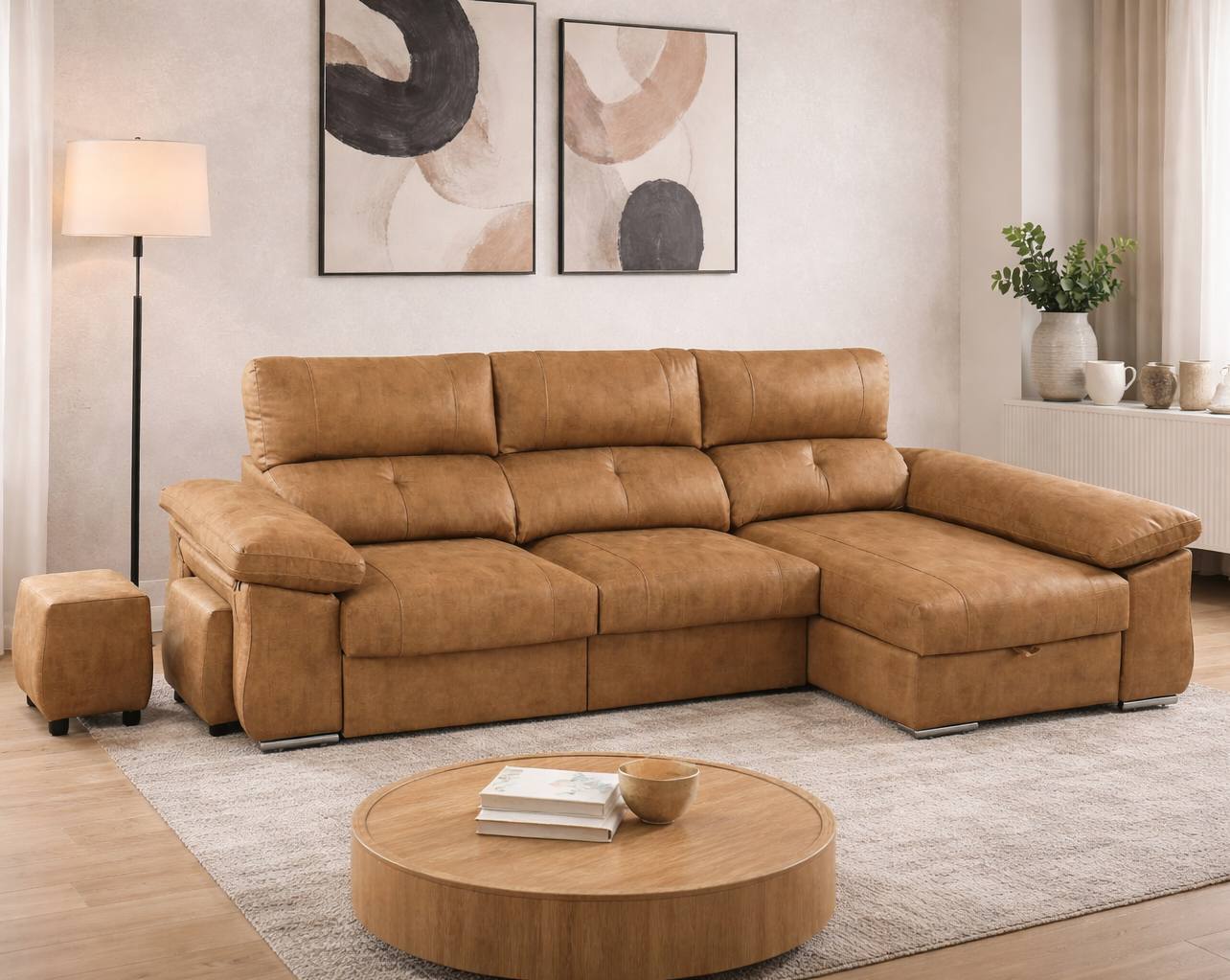 Sofa Chaise Long Audi com estrutura em madeira de pinho com espaço de arrumos.