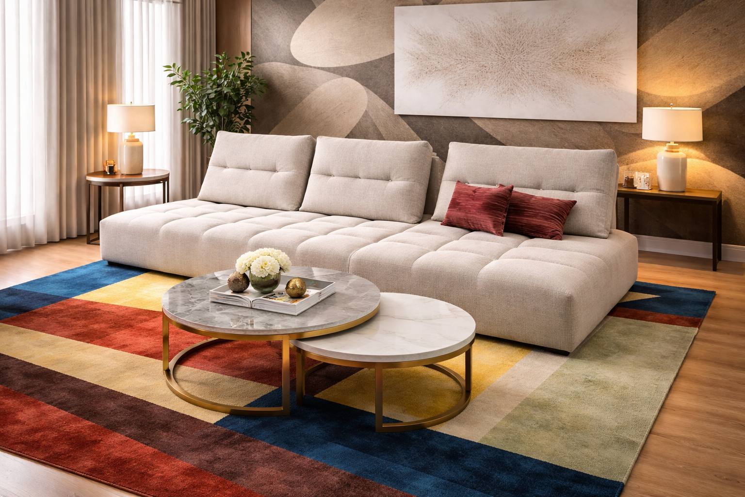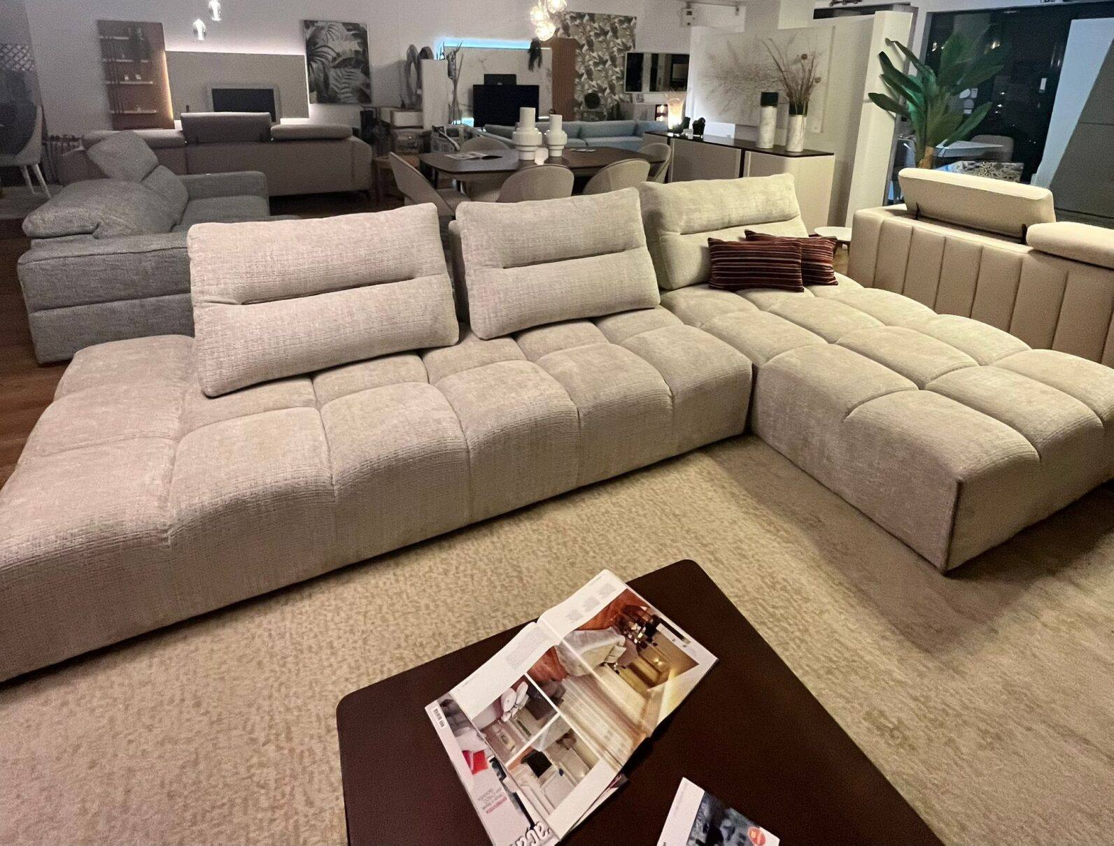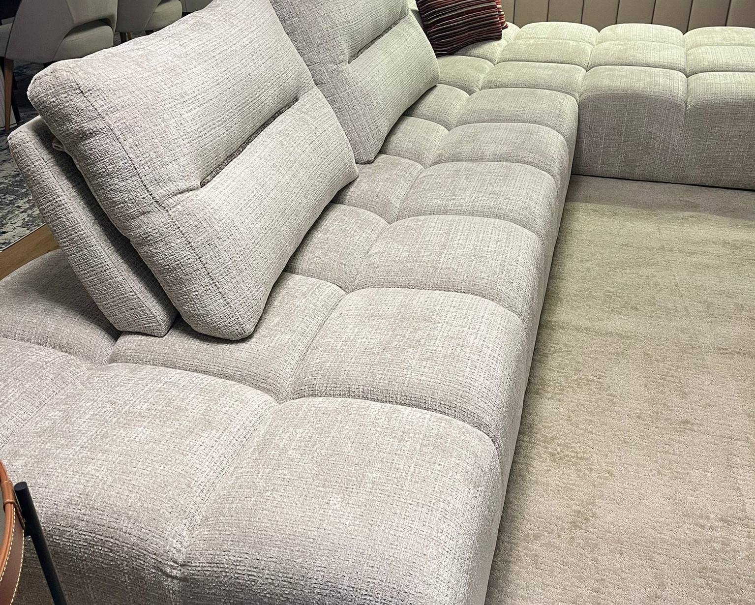 Sofa Chaise Long Evolution com revestimento em tecido, estrutura em madeira de pinho.