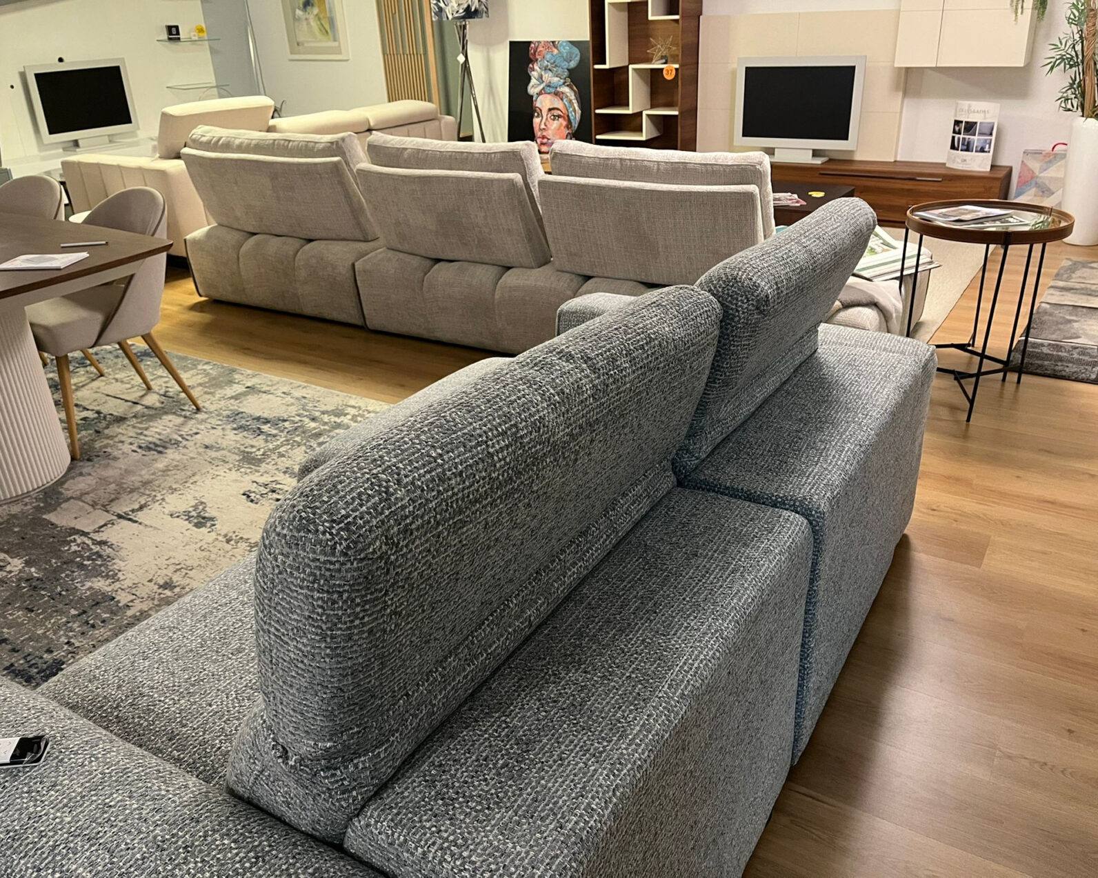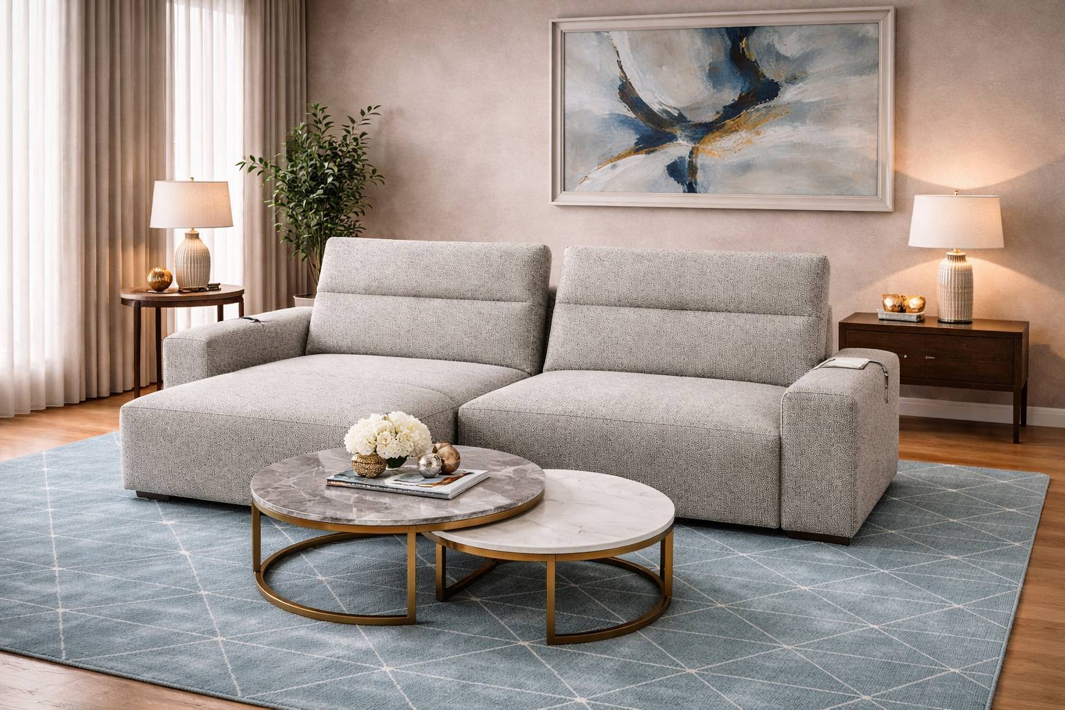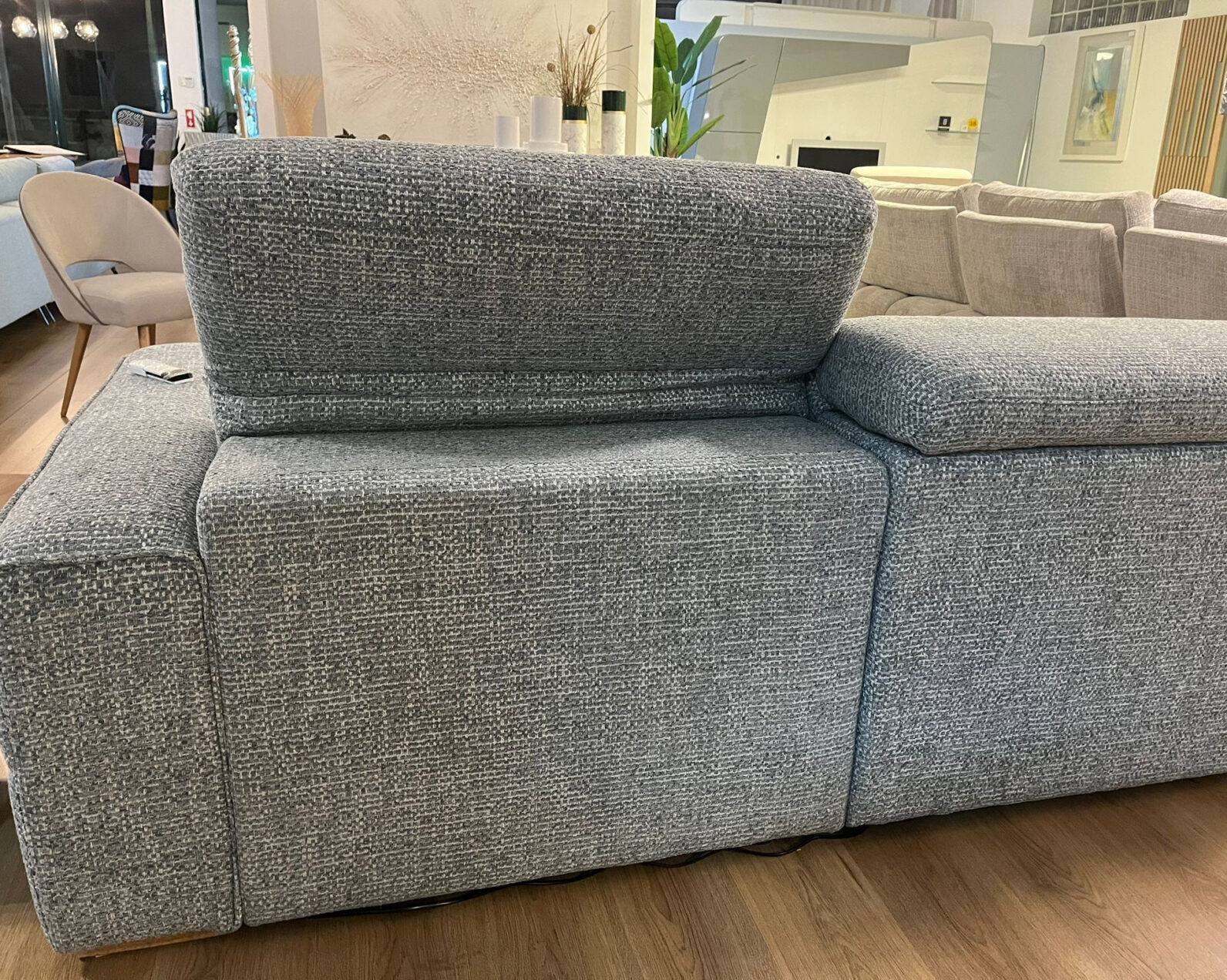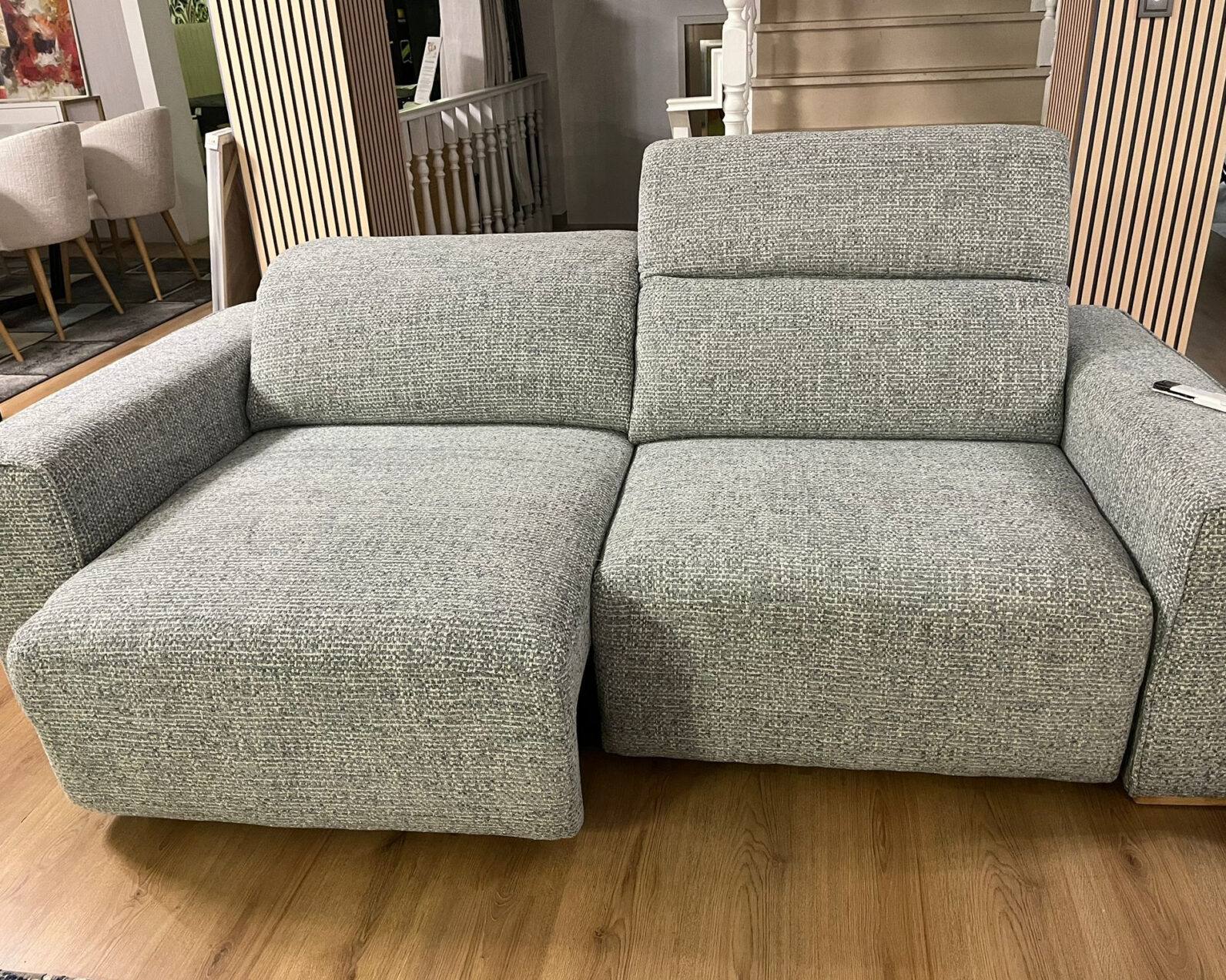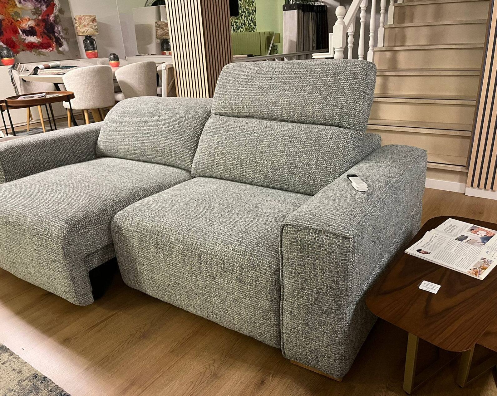 Sofa Cuba com sistema elétrico nos dois assentos revestimento em tecido, estrutura em madeira de pinho.