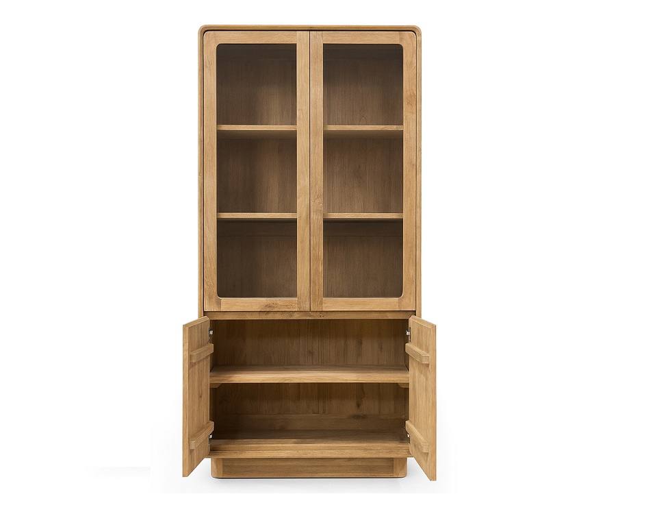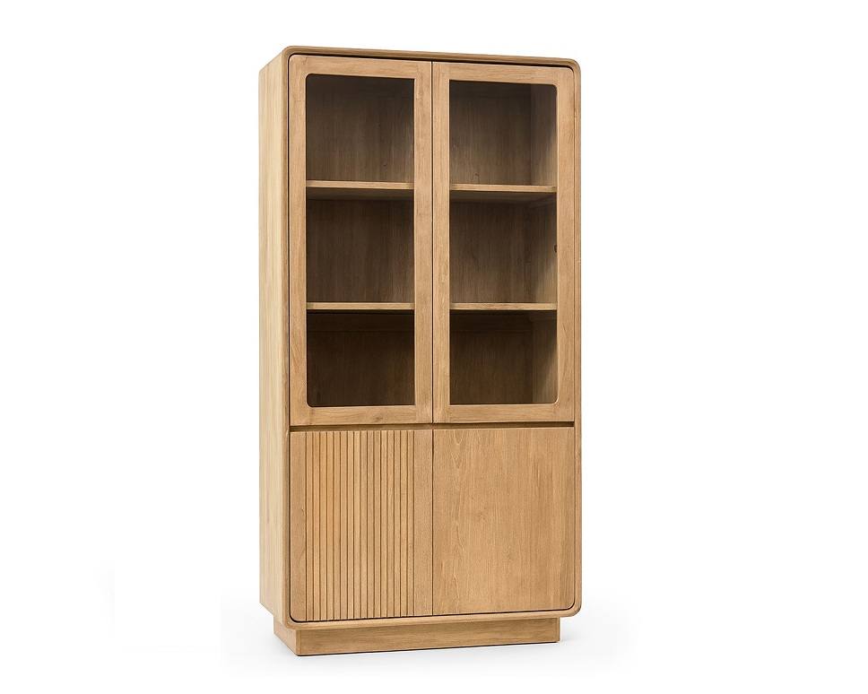 Vitrine Eyre com quatro portas cantos redondos com uma porta com ripada em madeira maciça.