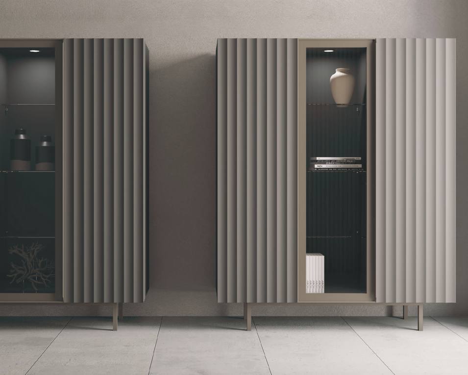 Vitrine Orion com três portas em Lacado Mate com pés metálicos.